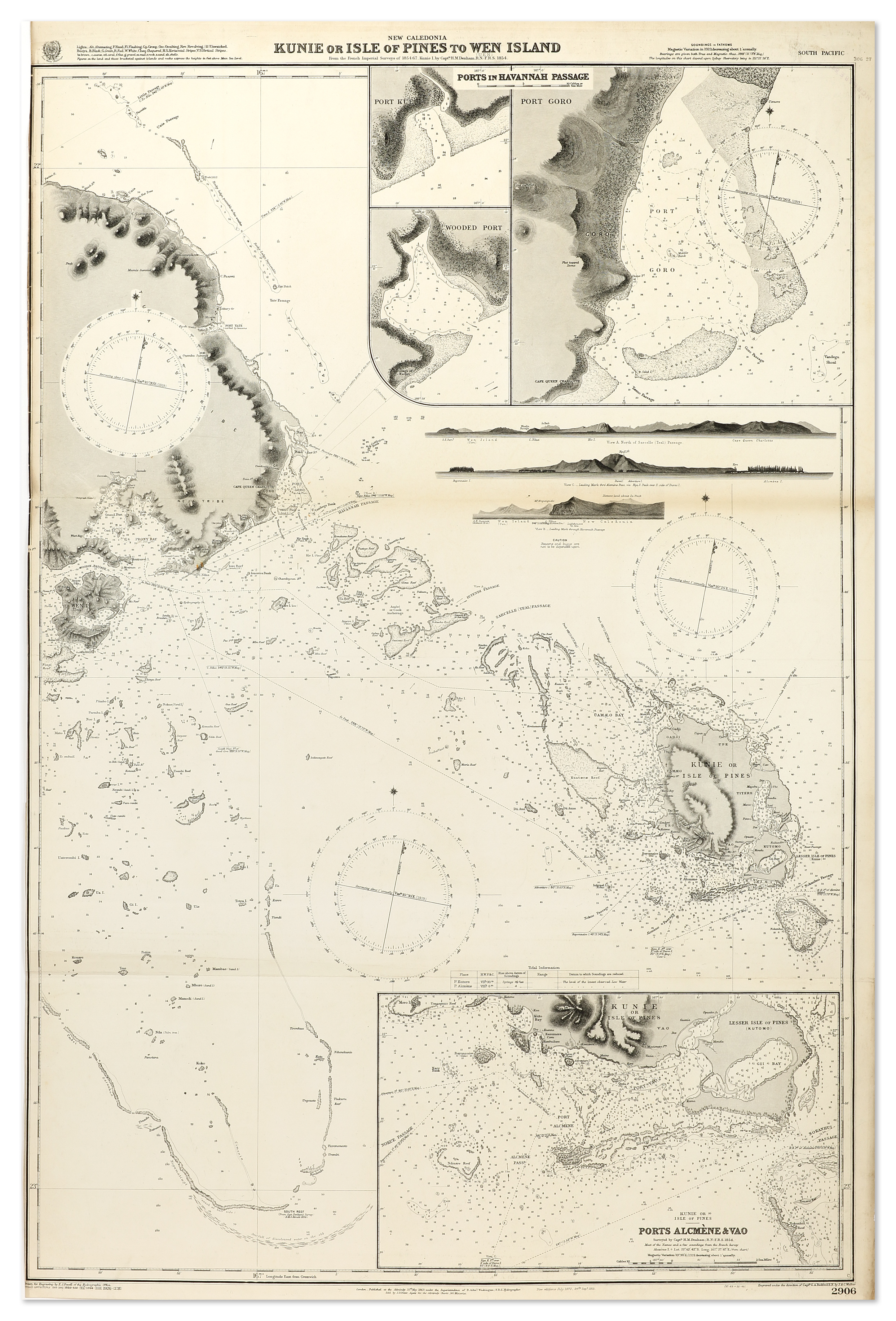 Rare Hydrographic chart of the Island of Pines, New Caledonia. The regular updating of Hydrographic charts by the Hydrographic Office was to ensure that commanders of ships, pilots and other mariners were able to have the most to up to … Read Full Description