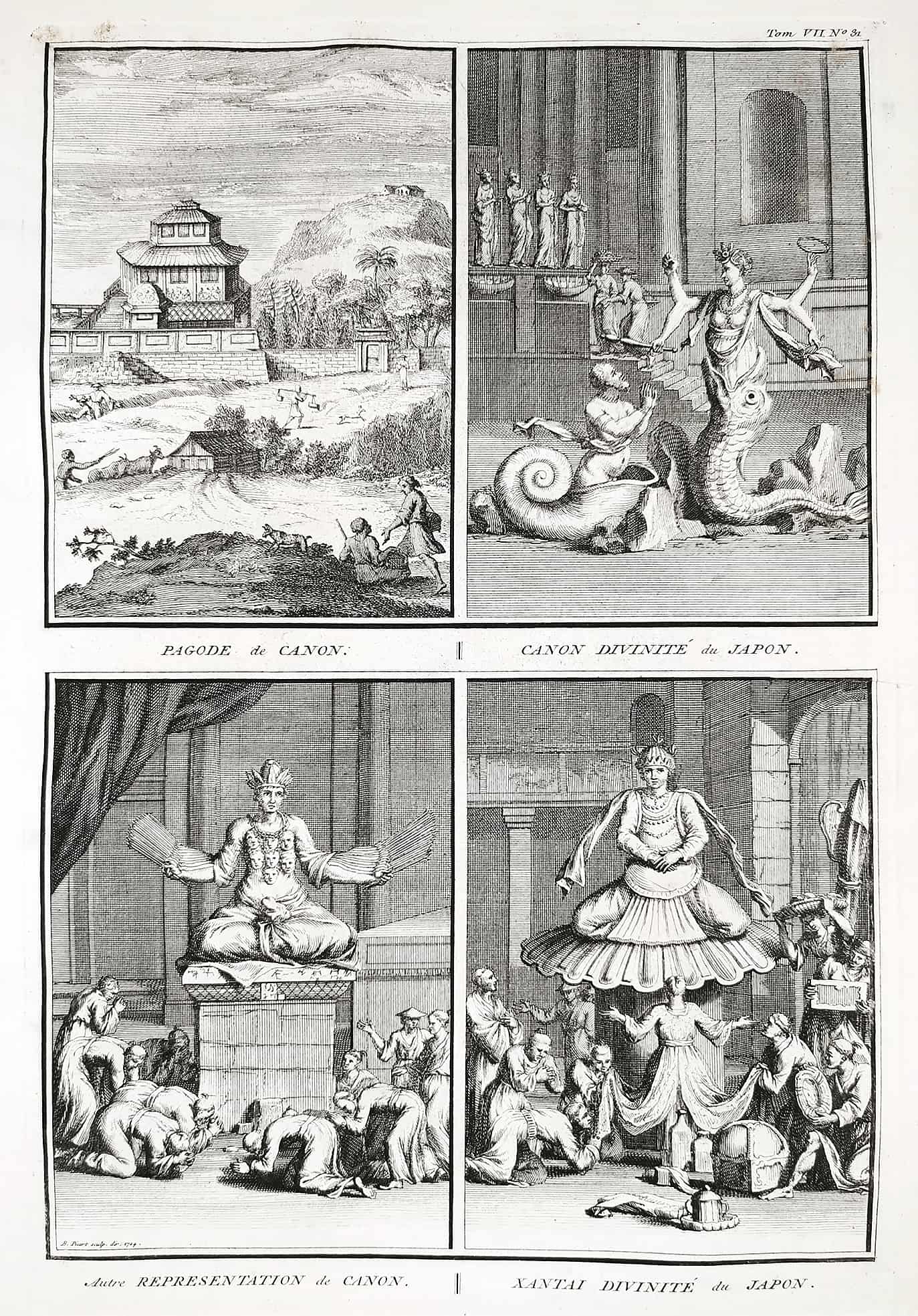 “Canon pagoda. Canon divinite of Japan. Other representation of a cannon. Xantai divinity of Japan.”