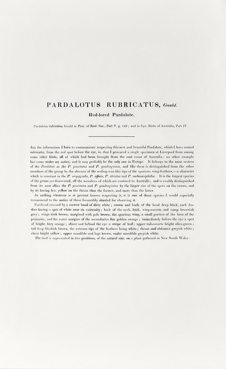 In his introduction to The Birds of Australia, Gould stated the reasons for endeavouring the mammoth task of documenting the ornithology of Australia; “I was naturally desirous of turning my attention to the Ornithology of some other region; and a variety of opportune and concurring circumstances induced me to select that of Australia, the birds of which, although invested with the highest degree of interest, had been almost entirely neglected In the absence, then, of any general work on the Birds of Australia, the field was comparatively a new one, and of no ordinary degree of interest, from the circumstance of its being one of the finest possessions of the British Crown, and from its natural productions being as remarkable for the anomalous nature of their forms, as for their beauty, and the singularity of their habits.”