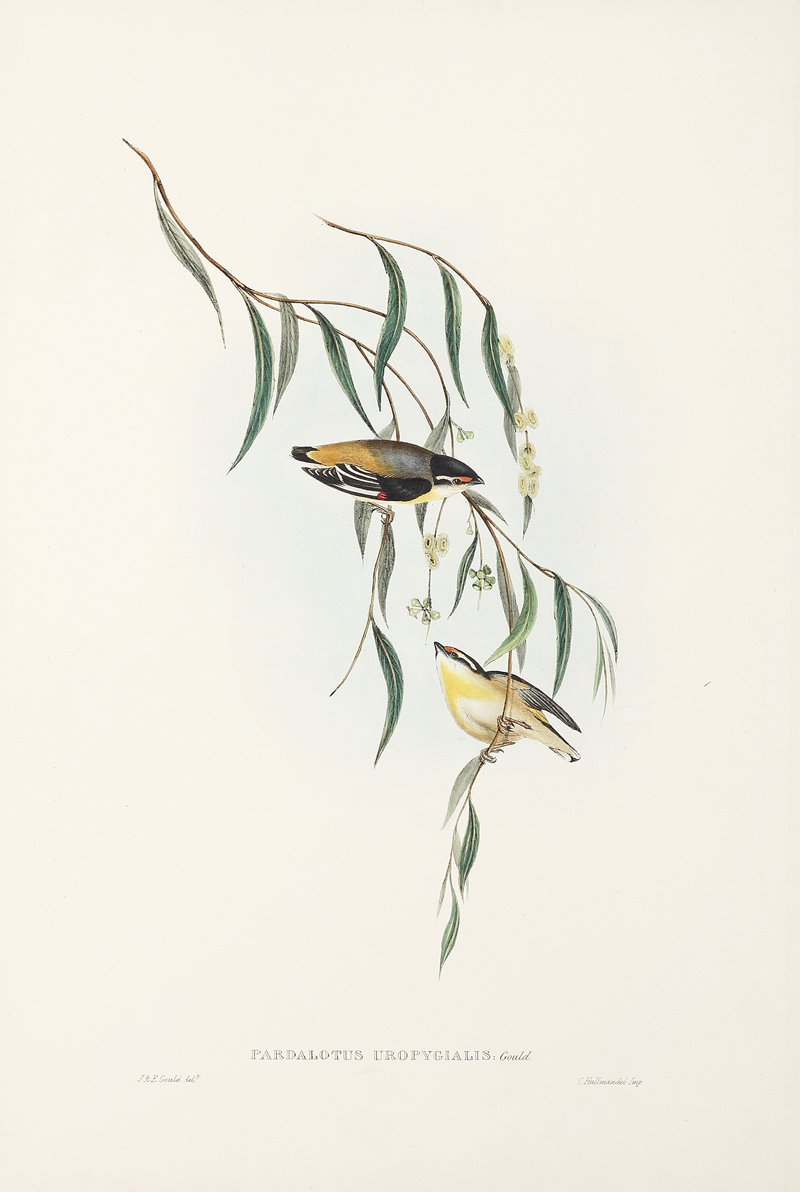Rare lithograph of the best and largest colonial image of the Black-headed Pardalote by the John Gould from his epic series, The Birds of Australia and Adjacent Islands, published for the author, printed by Richard and John E. Taylor, London.