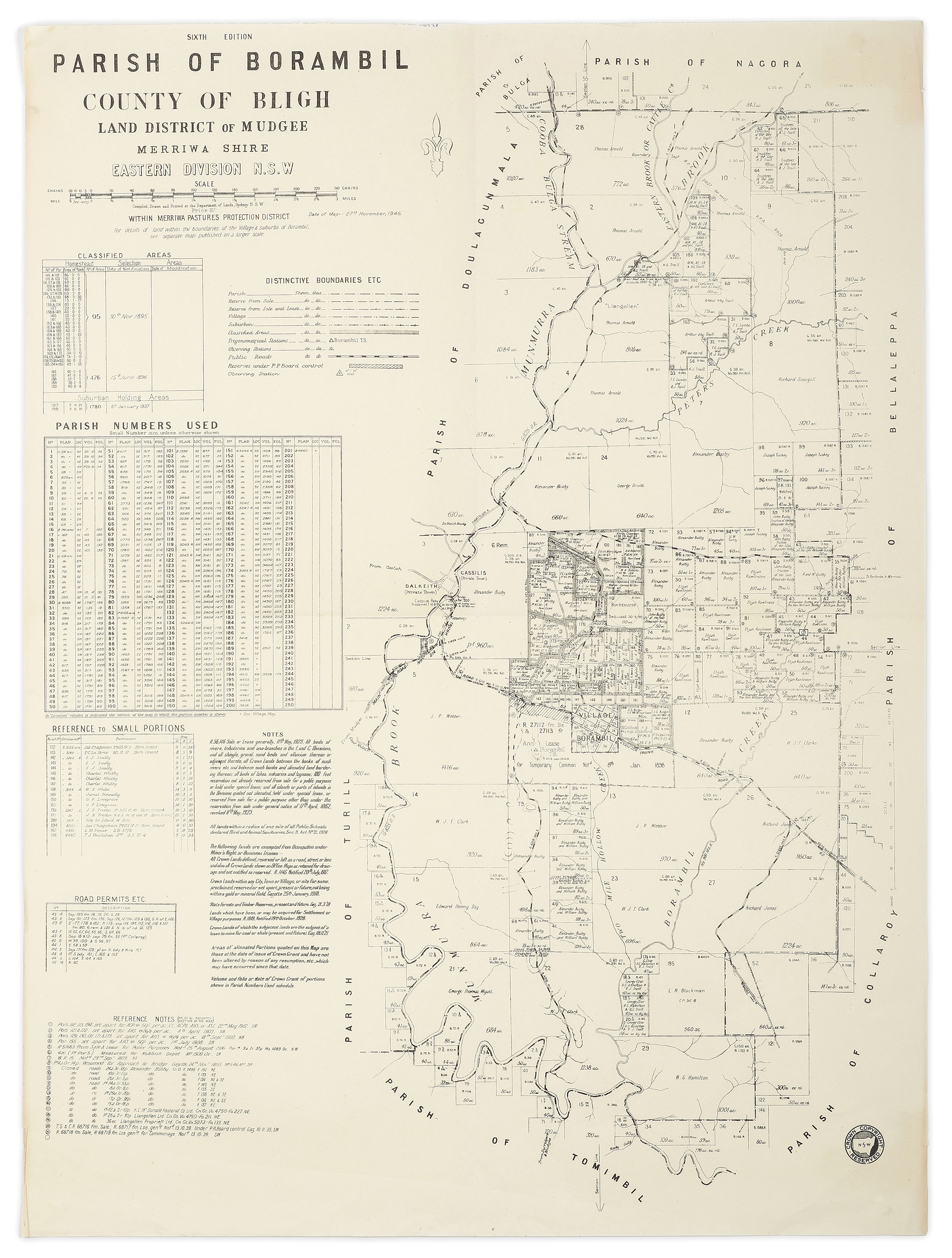 Detailed c.20th Parish map of Borambil with properties with landowners name.