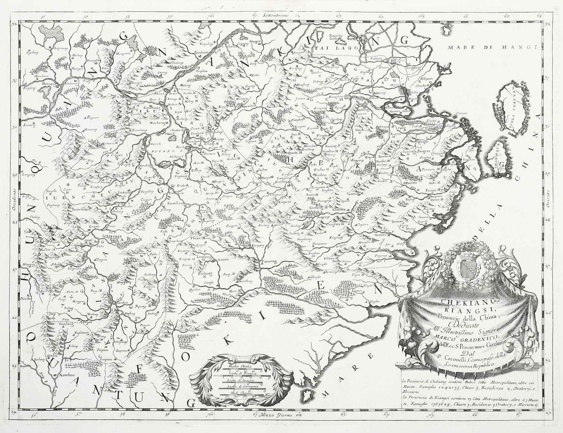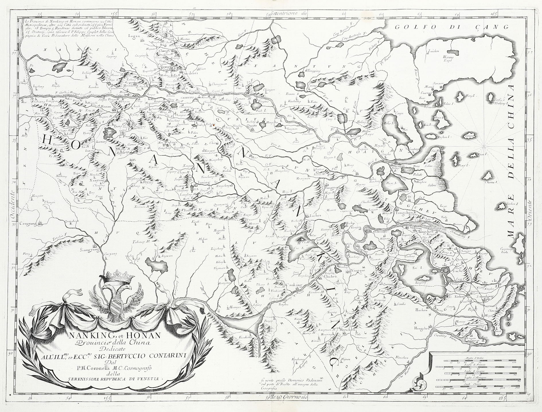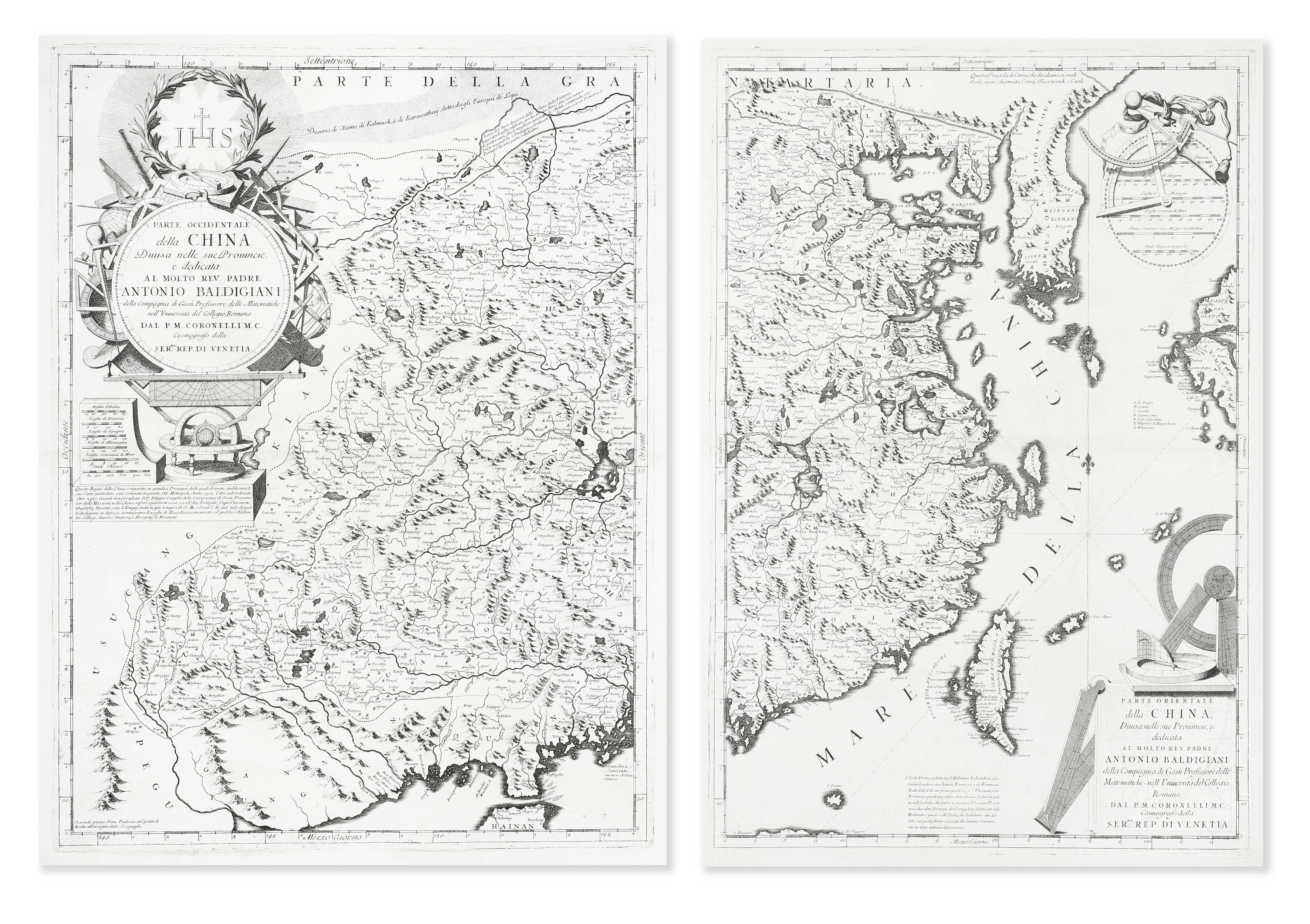A complete set of the most sought-after c.18th maps of China by Vincenzo Coronelli (1650–1718), based on information obtained from Jesuit sources.