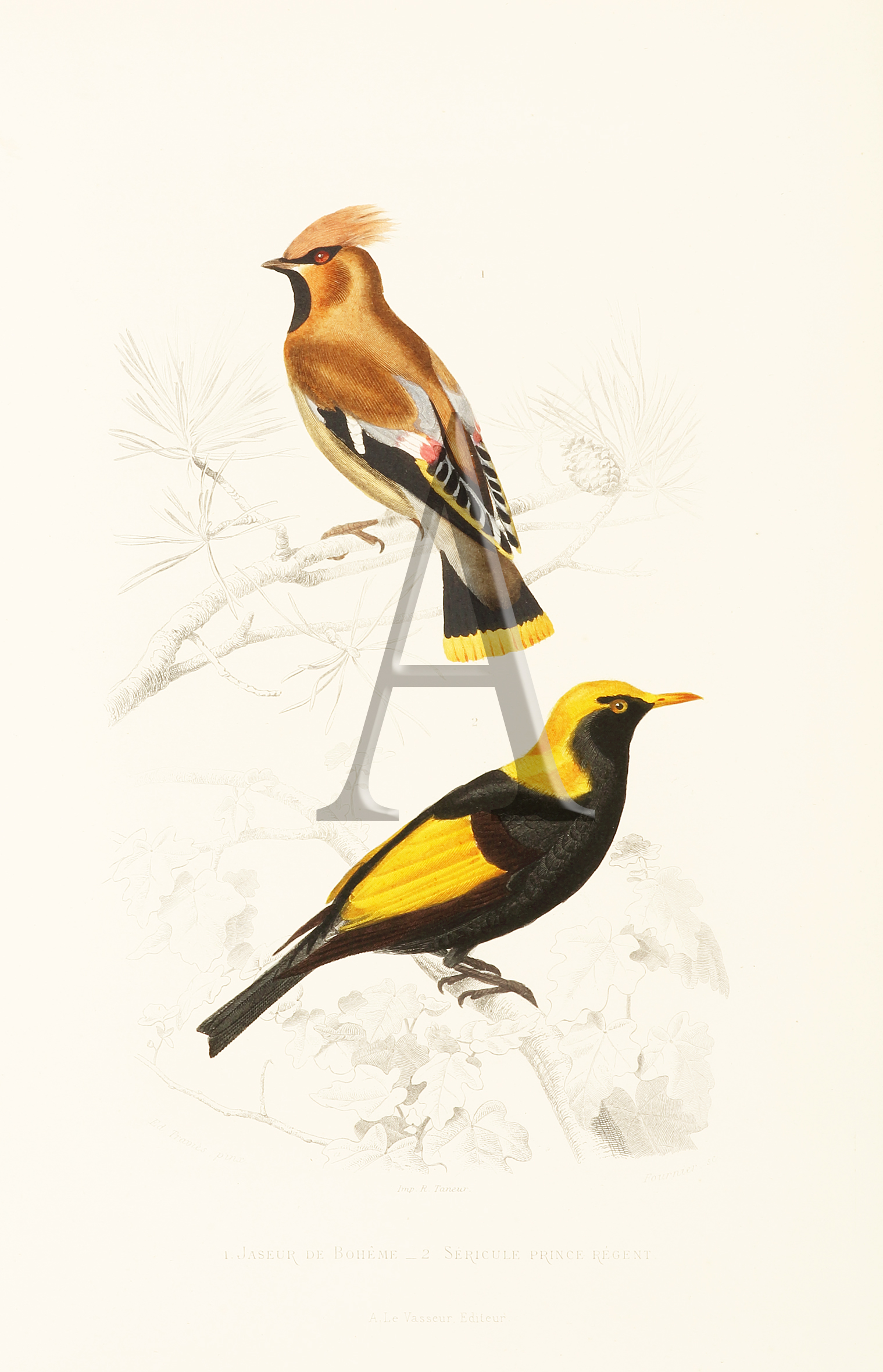 Travies was born in Doullens, France in 1809, the younger brother of the caricaturist Charles Joseph Traviès de Villier (1804-1859). Reknown throughout his career a an eminent natural history artist in watercolour and lithography. He exhibited regularly at the Paris Salon between 1831 and 1866.