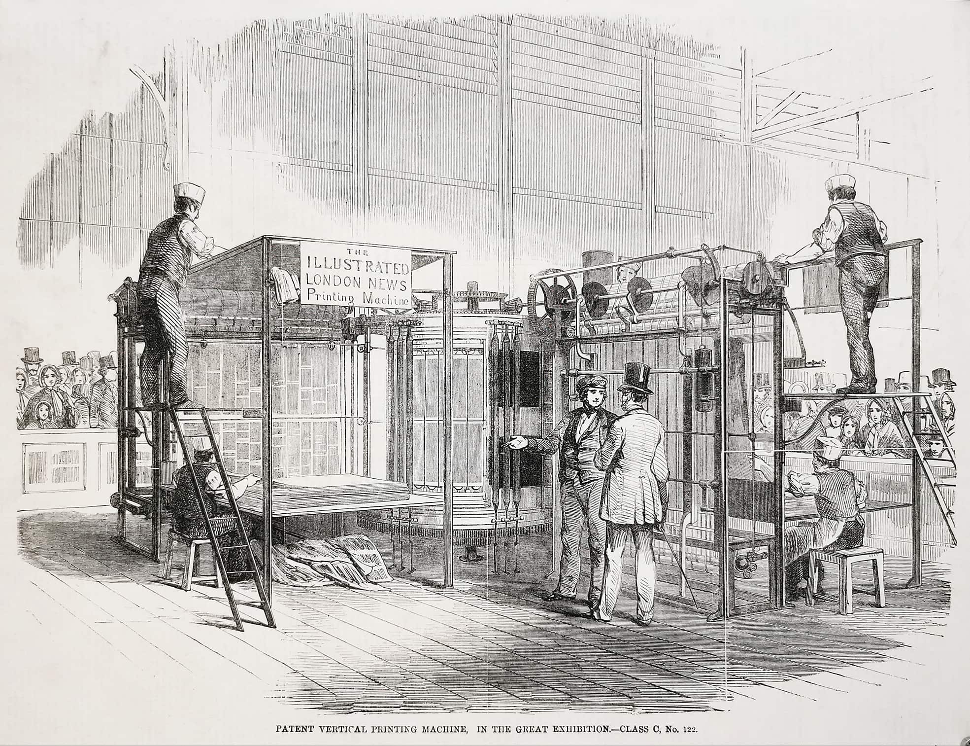 Engraving of the “Illustrated London News” (Applegath’s) printing machine. From the original edition of the Illustrated London News.