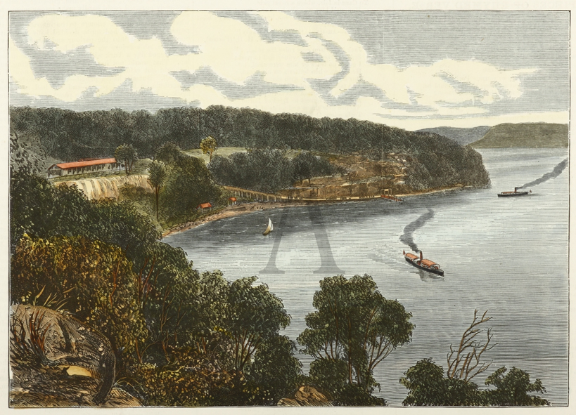 Rare colonial engraving of Pearl Bay. From the original edition of the Illustrated Sydney News.