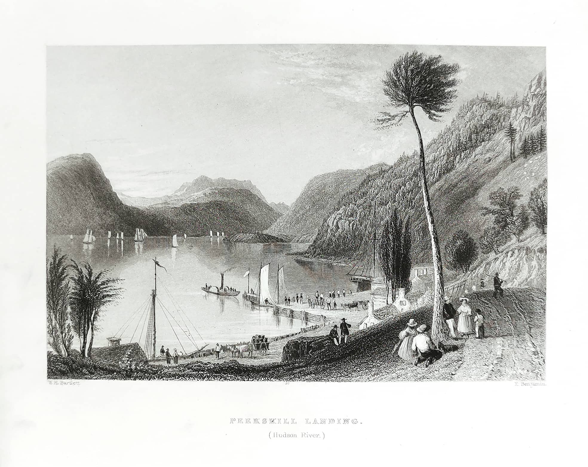 Engraving of Peekskill Landing Park, on the Hudson River.