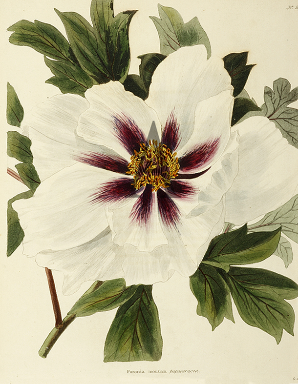 Paeonia suffruticosa Tree Peony Various in colors, as rose, red, to white.