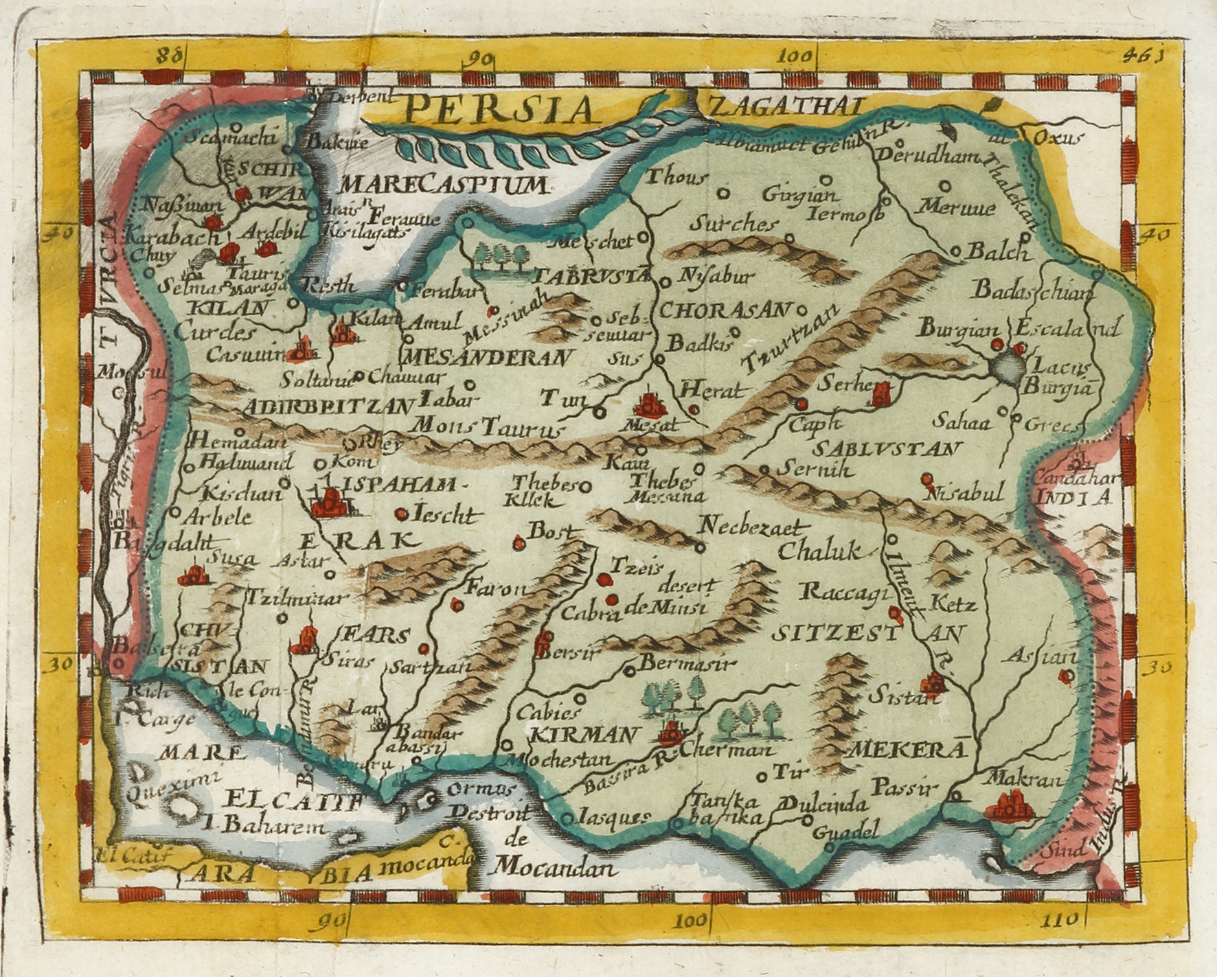 Rare early miniature map of Persian empire (Iran) by Pierre Duval.