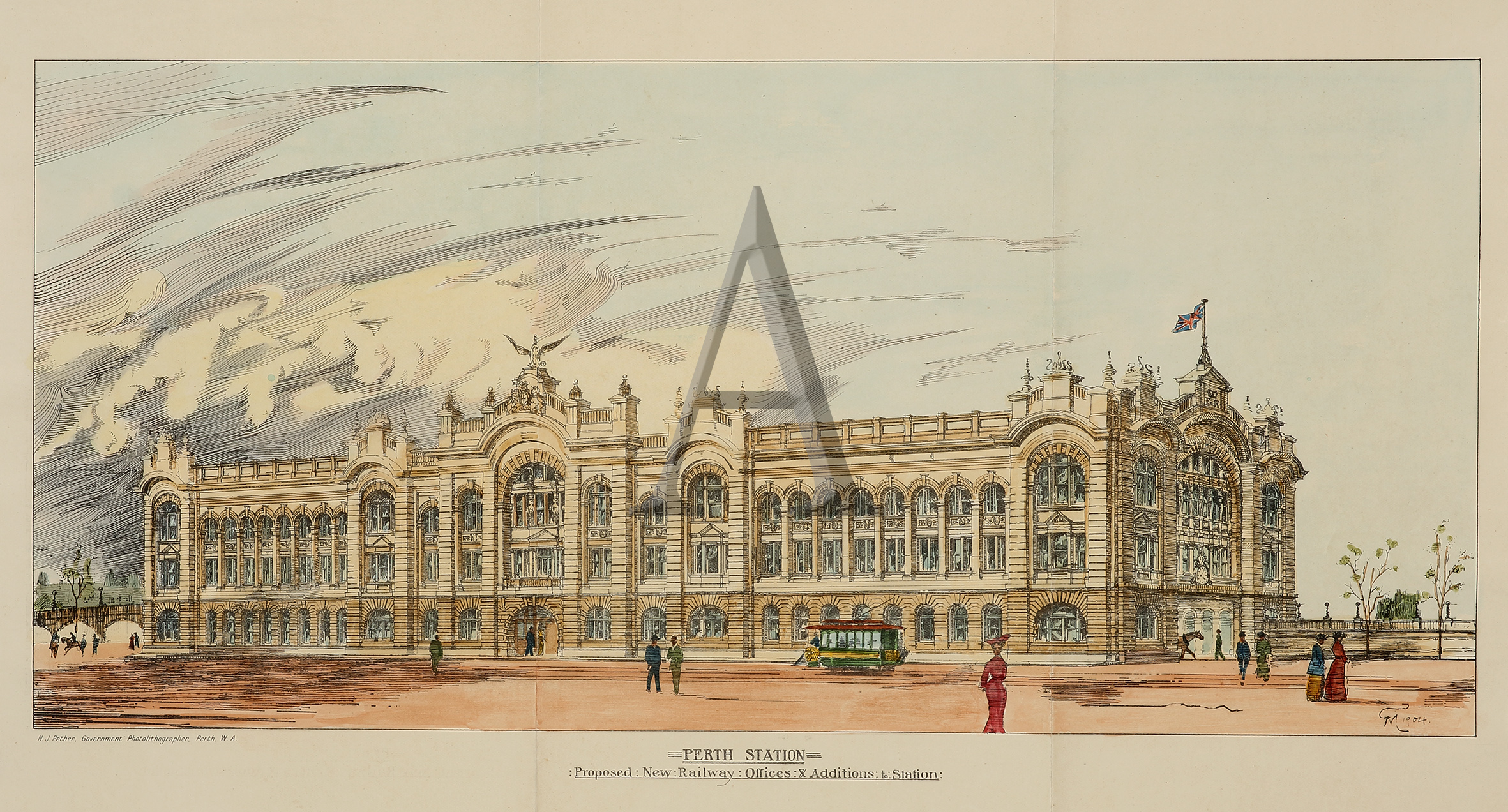 Rare view showing the proposed additions to the Perth Station that were never built.