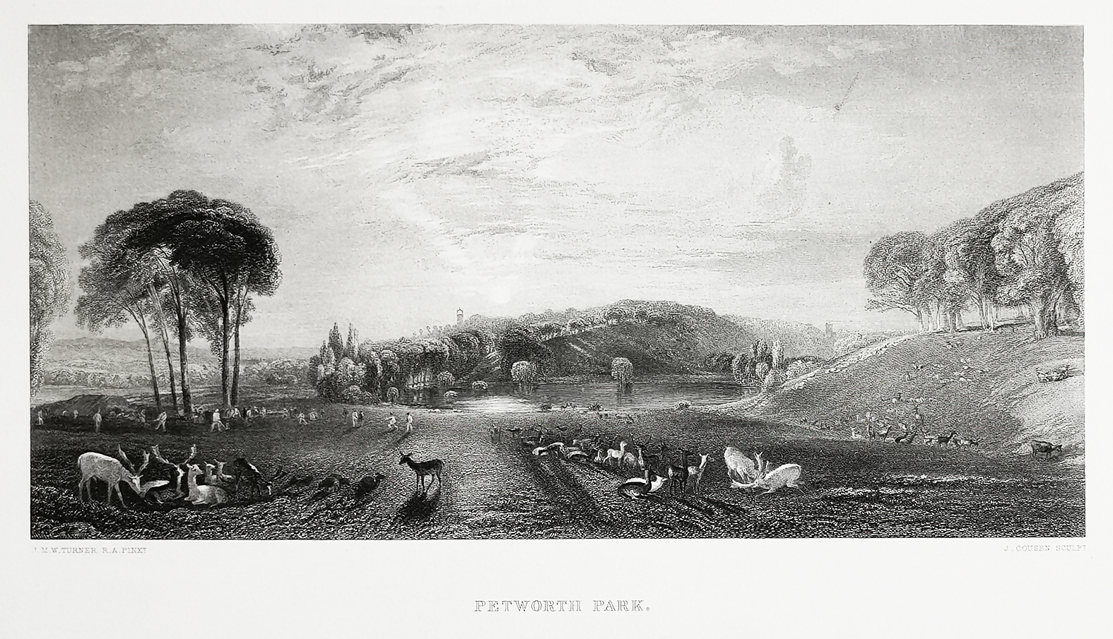 Fine engraving of Petworth Park, in the County of Sussex. Petworth Park was designed by Capability Brown, the park is one of Englands most famous largely due to the number of pictures painted by Turner.