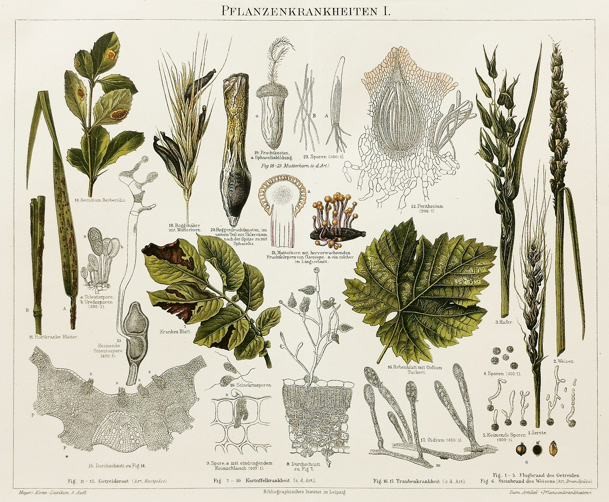 Detailed German botanical lithograph of plant diseases.