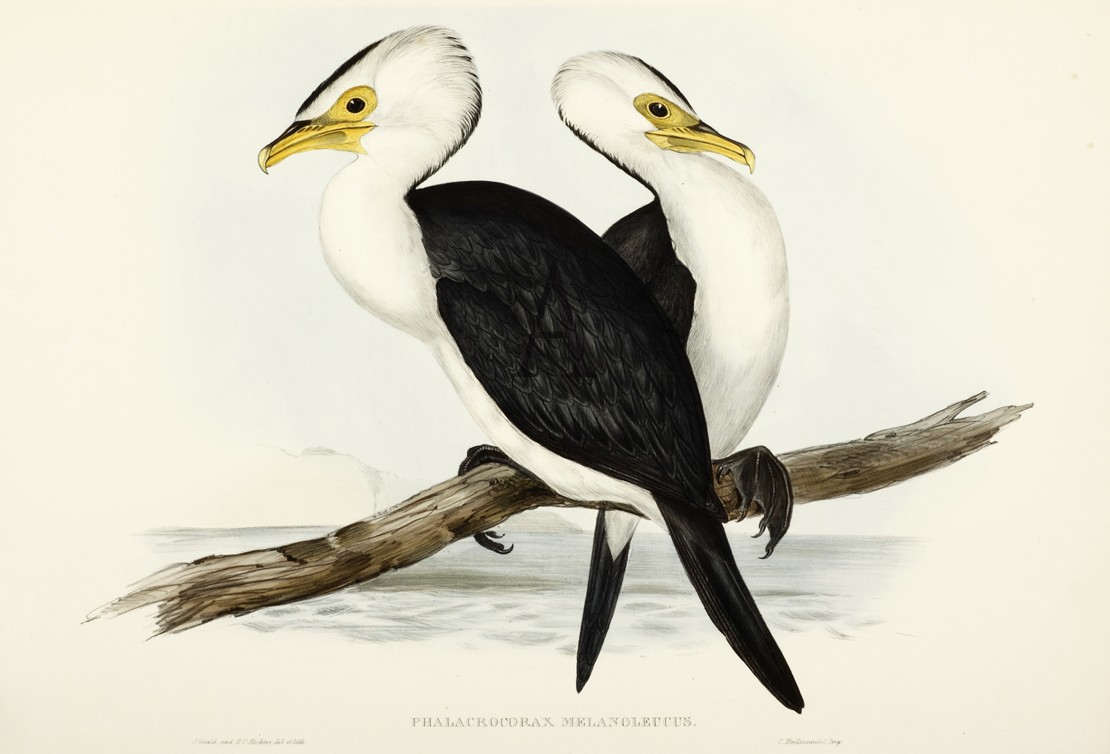 Gould common name Pied Cormorant Modern common name Little Pied Cormorant Gould scientific name: Phalacrocorax Melanoleucus Modern scientific name: Microcarbo melanoleucos Distribution Australia wide coastal, islands, esturaies and inland waterways. Vieillot 1817 RDCBOB pg 92