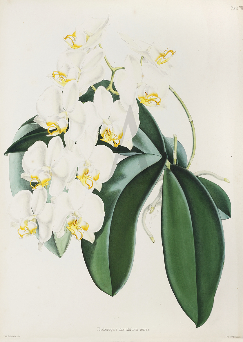 This species is usually found in the eastern to southeastern regions of Asia. From one of the best and largest C19th series devoted to Orchids, "Select Orchidaceous Plants" Lithographed by Walter Hood Fitch (1817-1892) ‘the most outstanding botanical artist of his day in Europe’. Rare and important series.