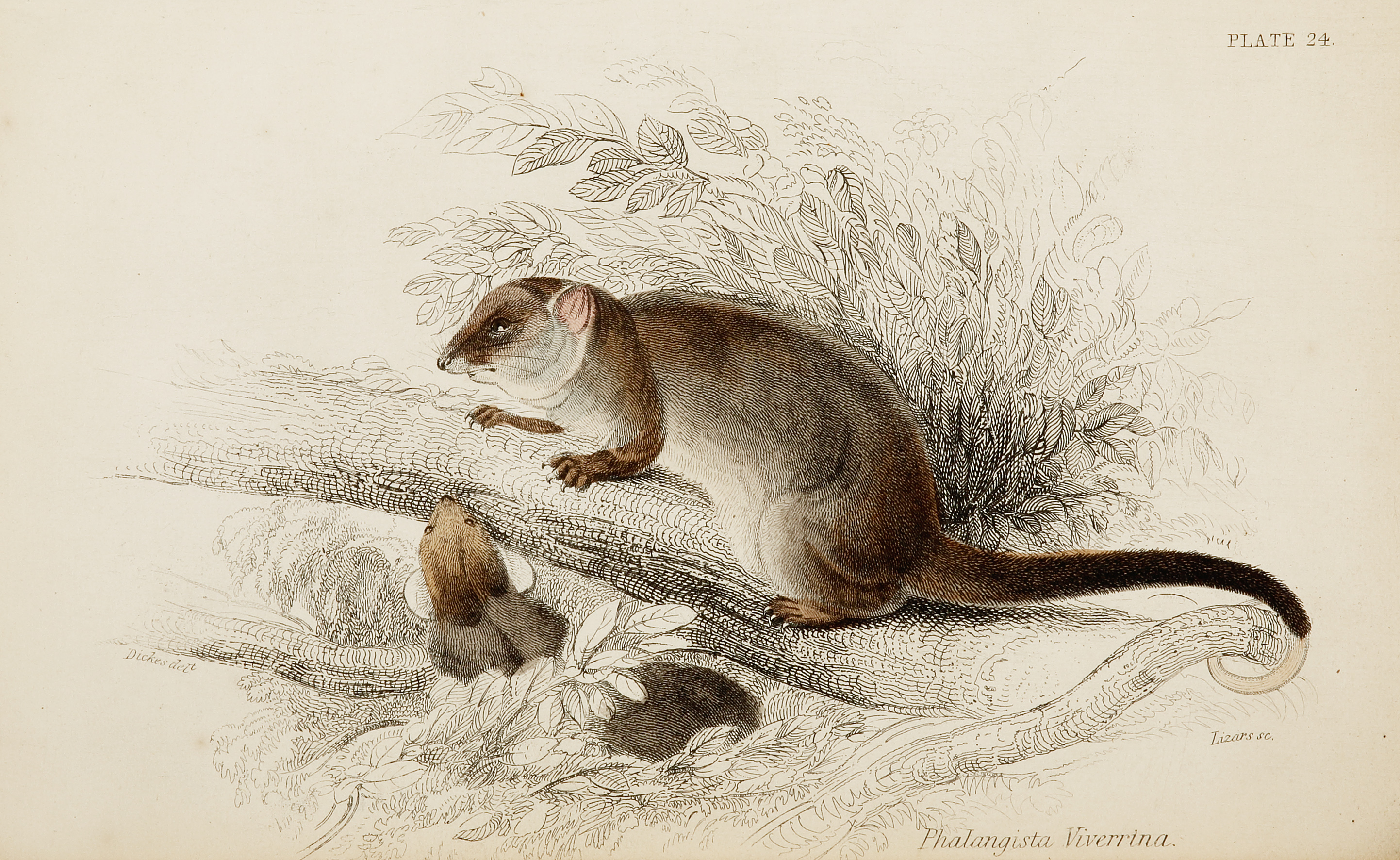 C19th engraving of the Green ringtail possum, from The Naturalist’s Library. This series of engravings of Australian mammals, predates Gould’s epic work done in 1863. This is the first issue with fine original hand colouring. Modern commonname Green ringtail possumModern scientific name Pseudochirus … Read Full Description