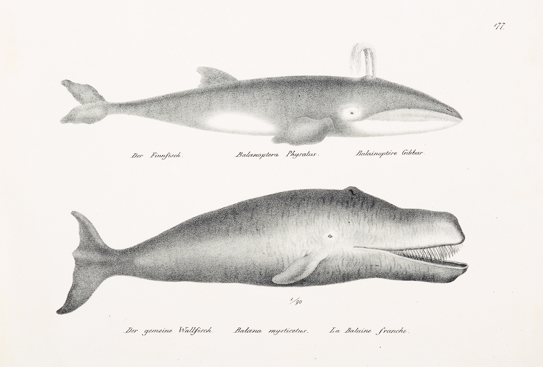 Physeter polycyphus. Physter macrocephalus. - Antique Print from 1824