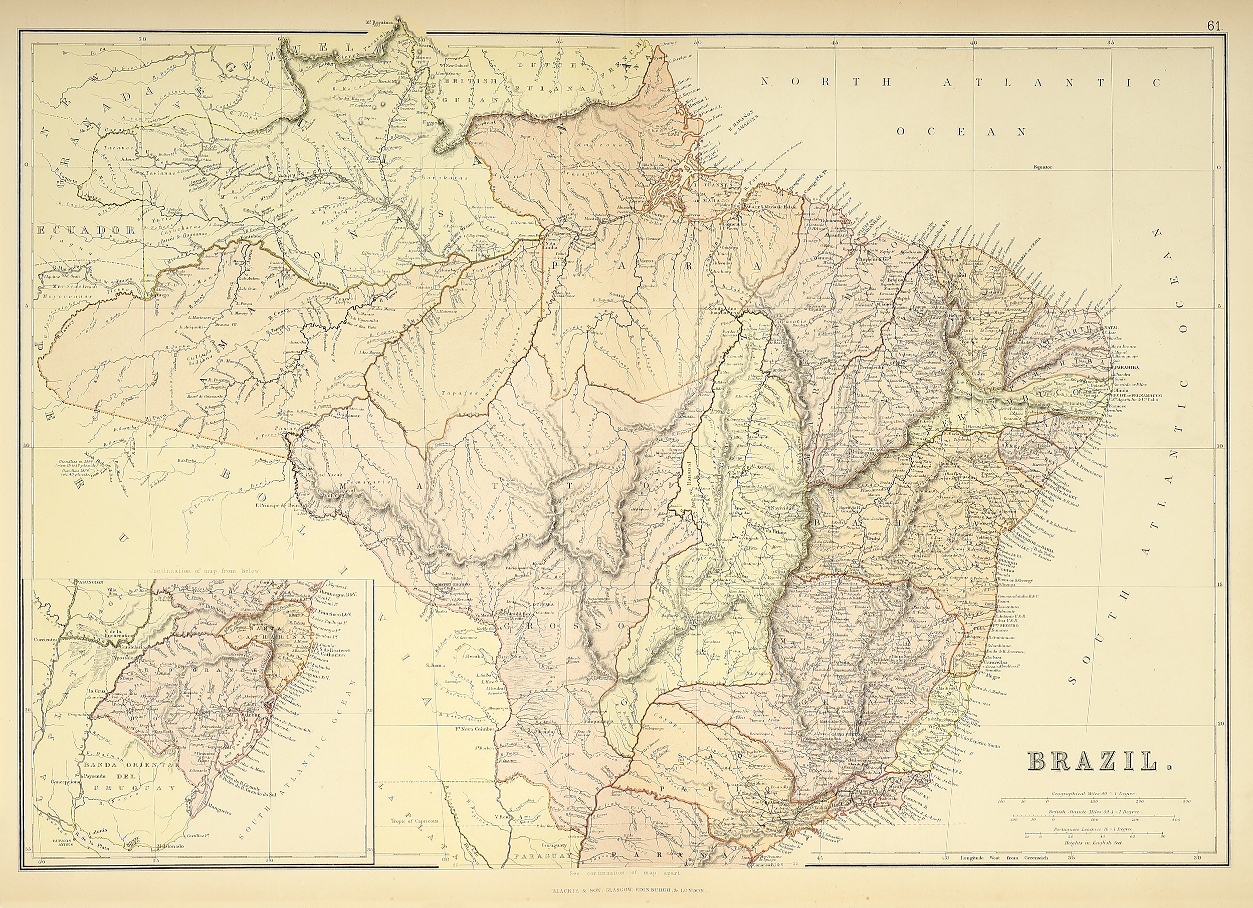 Detailed map of Brazil by Edward Weller. From W.G. Blackie’s,The Comprehensive Atlas & Geography of the World…