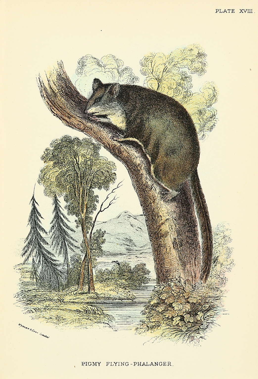 Modern common name:  Feathertail glider, pygmy gliding possum, pygmy glider, pygmy phalanger, flying phalanger and flying mouse