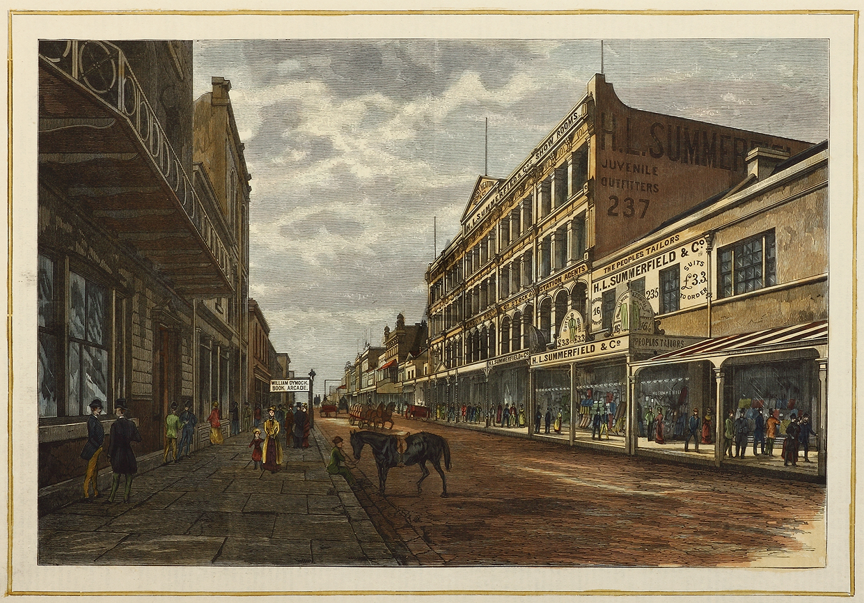 Pitt Street, Sydney, Looking South, from Market Street. - Antique View from 1884