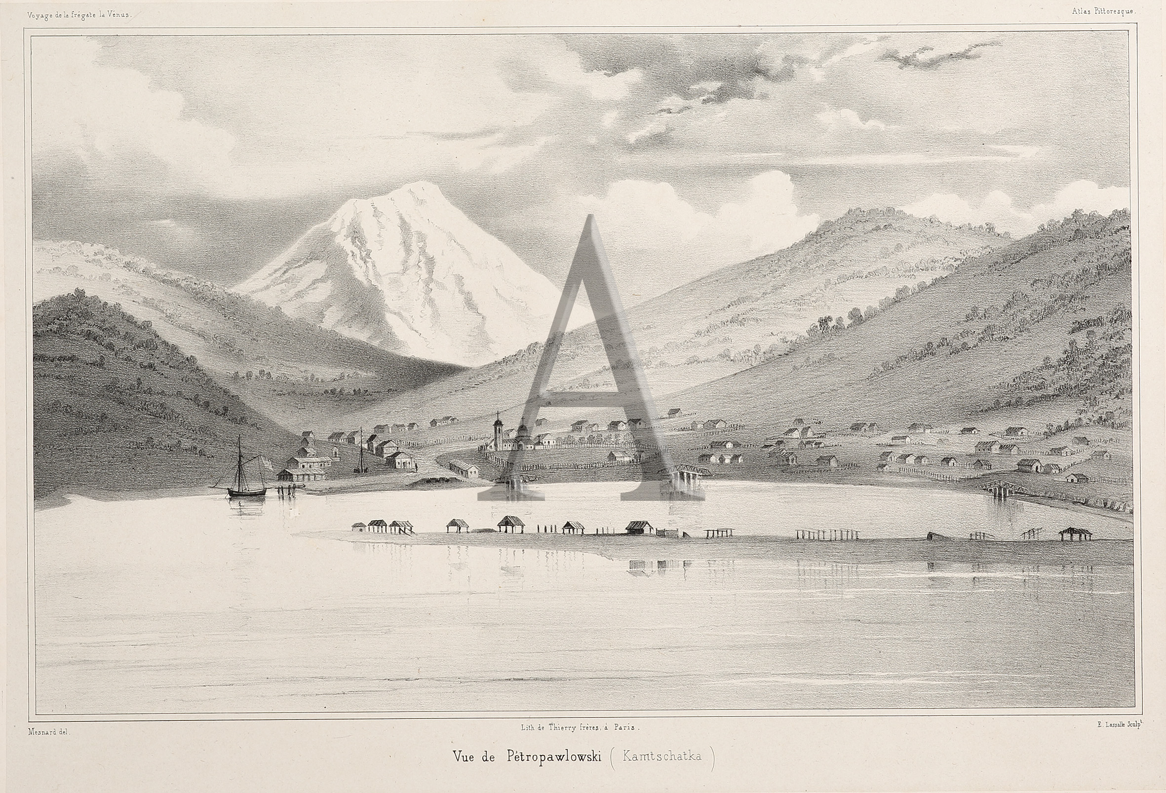 Then on 25/8/37 Cape Povorotnyy, to the south of Petropavlovsk in Kamachatka (Russia), was sighted, and on 31/8/37, after fog had concealed the coast for five days, the Venus entered Avacha Bay. There the French were warmly welcomed by Governor Shakov, who placed a house at Dupetit-Thouars disposal for an observatory and organised hunting trips for the officers.