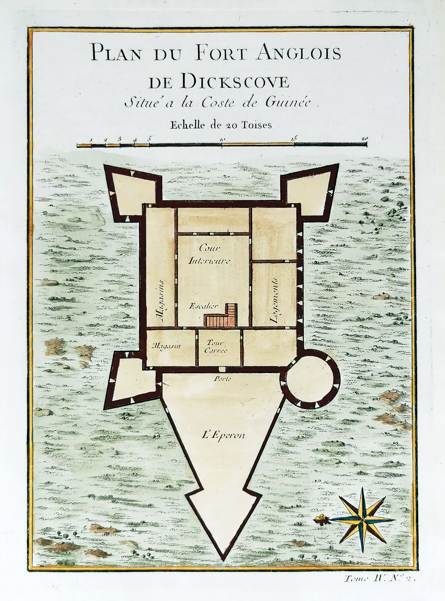 C.18th engraved plan of Fort Metal Cross, originally known as Fort Dixcove, is a military structure in Dixcove, Ghana. Prévost, A. Histoire générale des voyages. Paris. References: Phillips, P. A List of Geographical Atlases in the Library of Congress. Washington 1973 5991. … Read Full Description