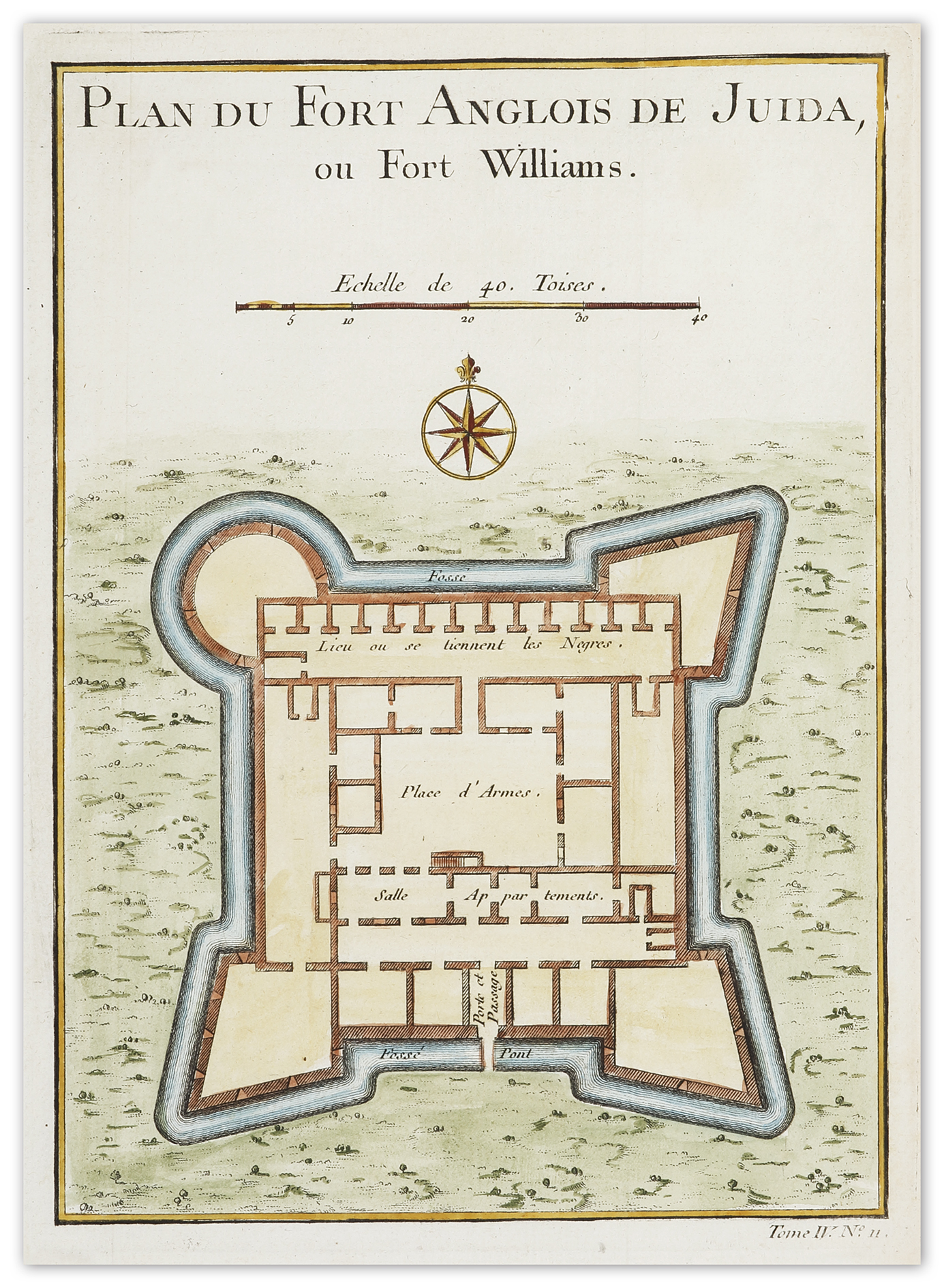 C18th plan of the English Fort William, Whydah in present day Benin on the Guinea coast of Africa.