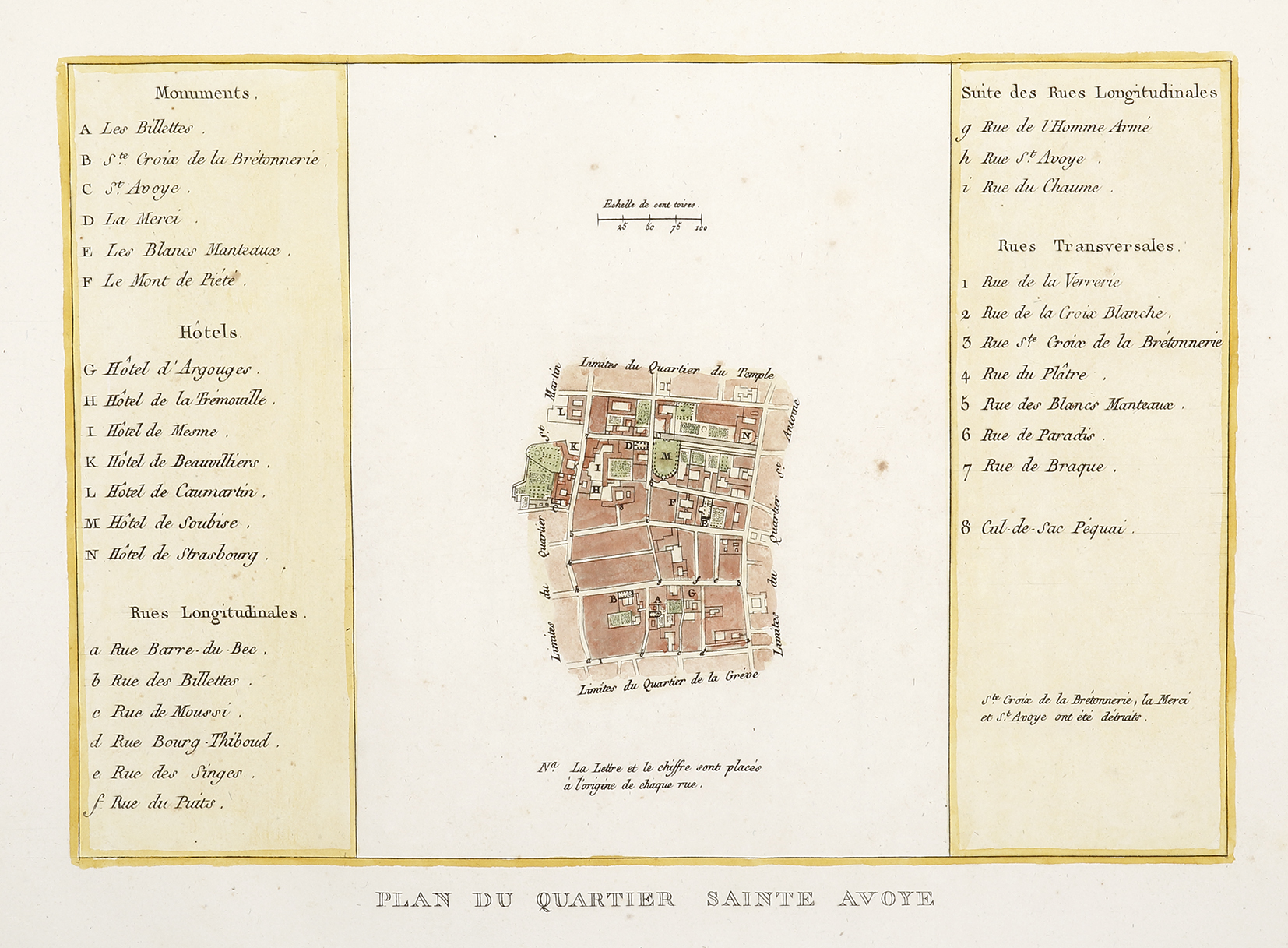Scarce early c.19th plan of Sainte-Avoye, part of the Marais district of Paris.