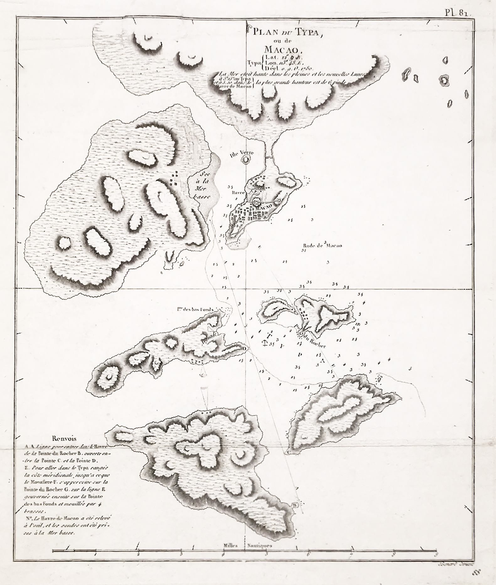 Rare map from the French edition of Cook’s voyages Map of Macao and the island of Typa (Taipa / Tamzai), China where the Resolution and Discovery were repaired and provisioned. They stayed from 1 December 1779 until 12th January 1780 … Read Full Description