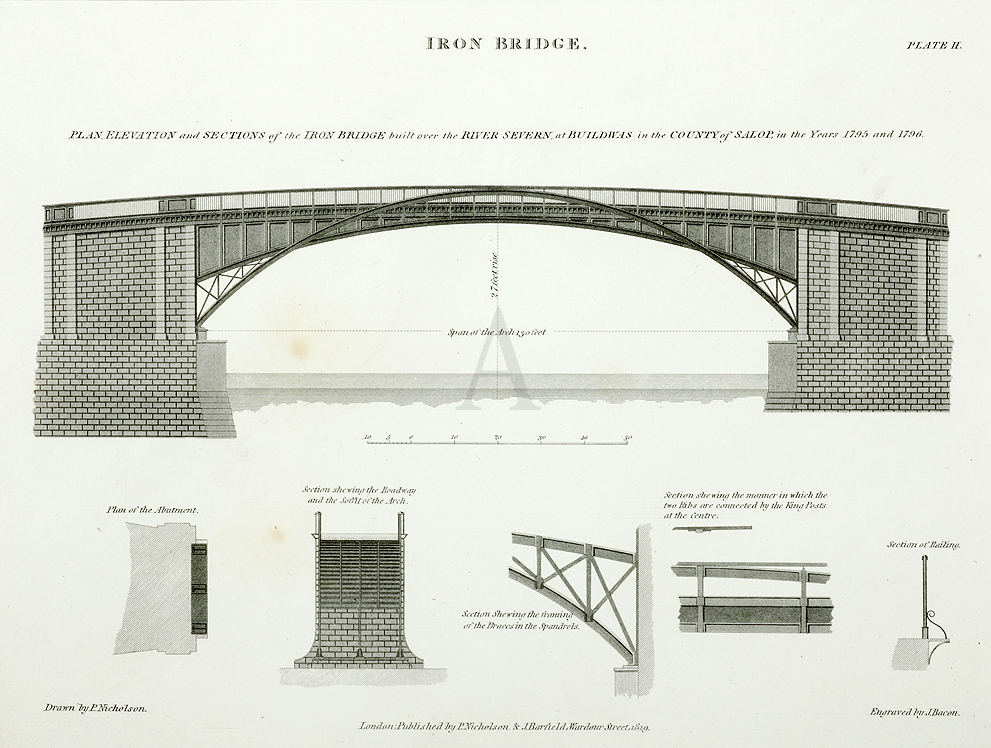 The Ironbridge is located in Shopshire. Built by Thomas Telford, based on a Swiss design.
