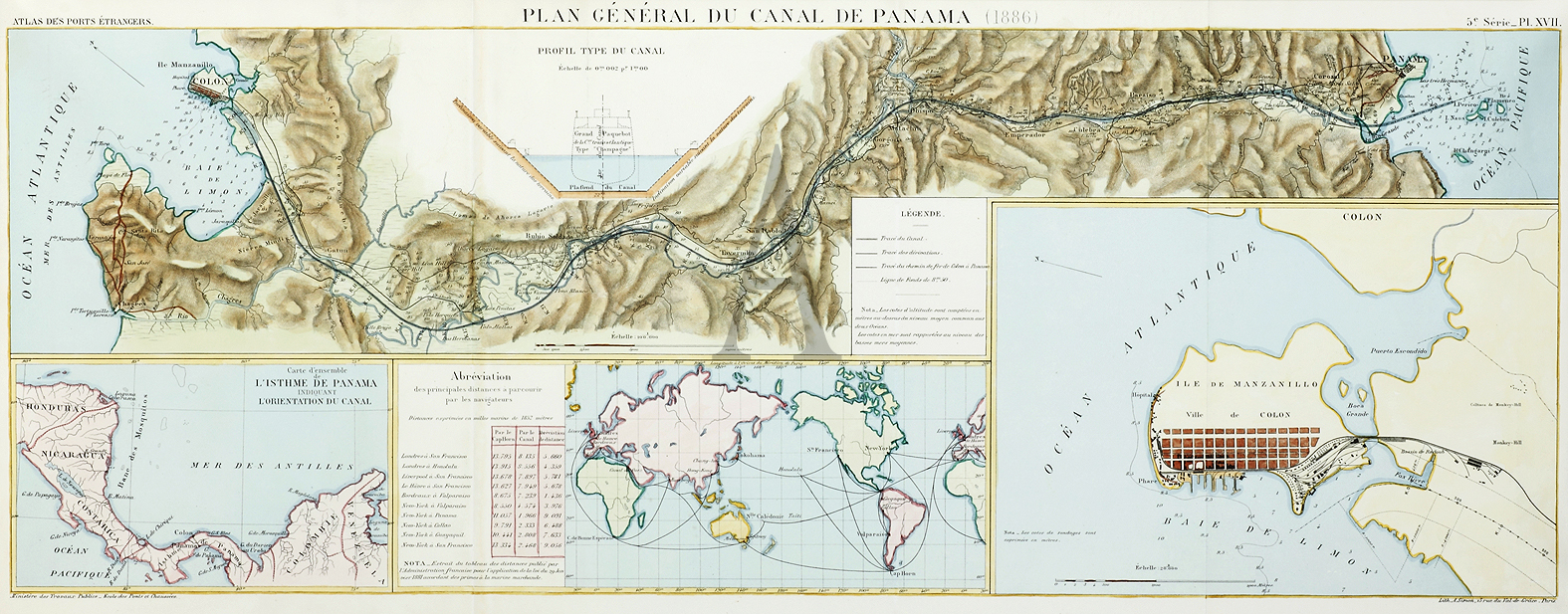 Very detailed French plan of the Panama Canal..