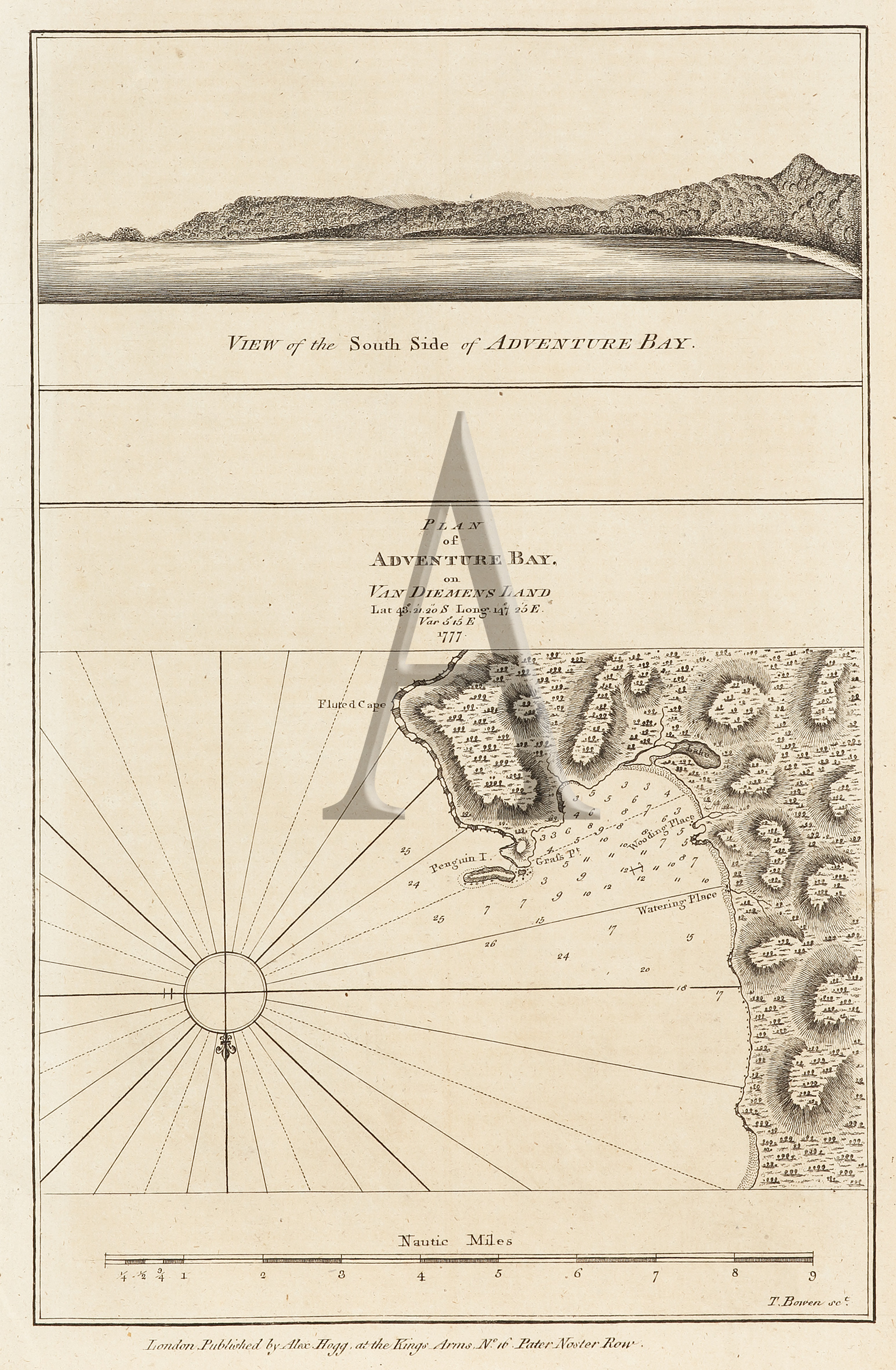 English edition of the Plan of Adventure Bay in Van Diemens Land. (with) View of the south side of Adventure Bay, Tasmania, from the accounts of Captain James Cook’s second voyage of exploration.