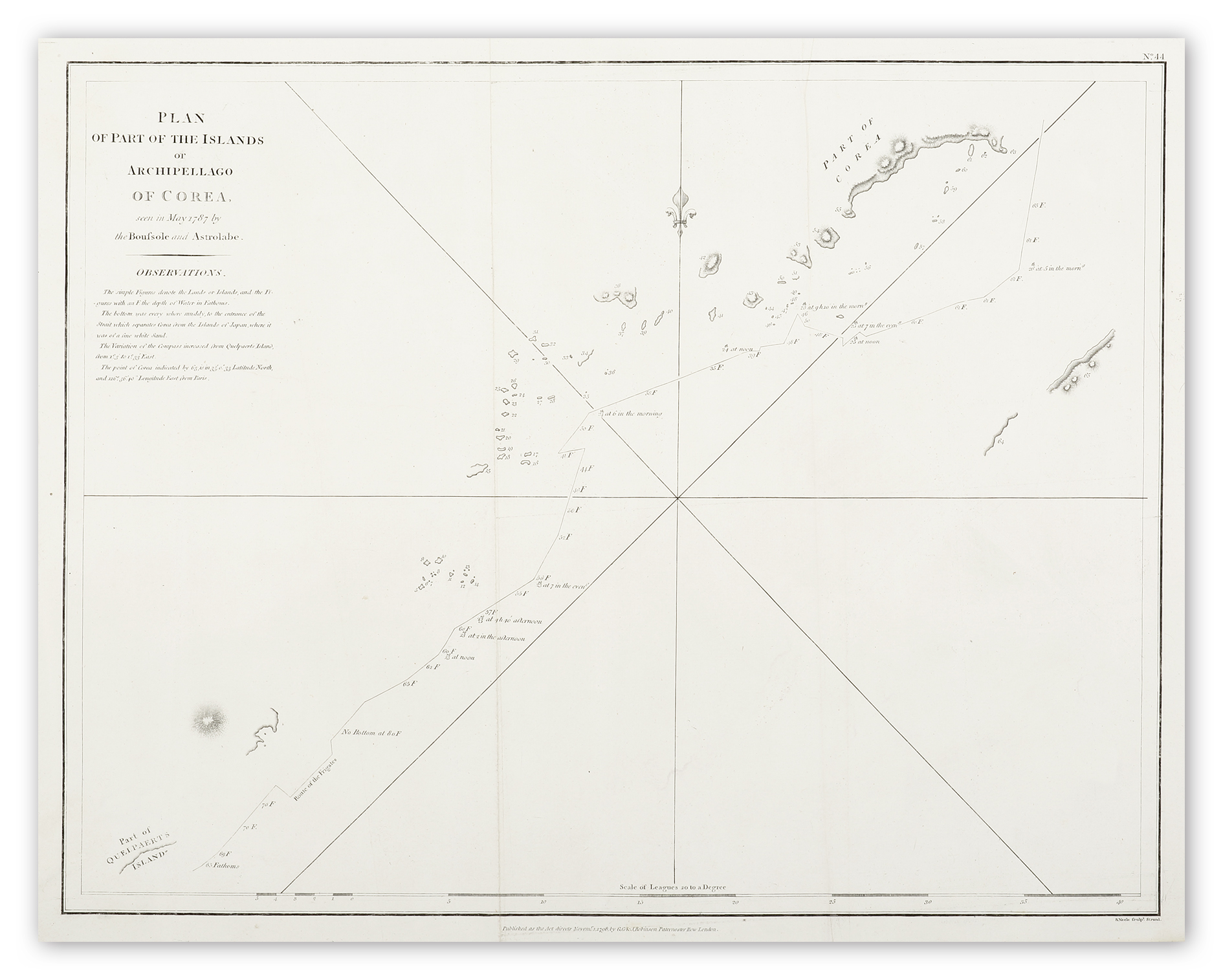 La Perouse’s scarce chart of Korea showing the tracks of his ships Boussole and Astrolabe.