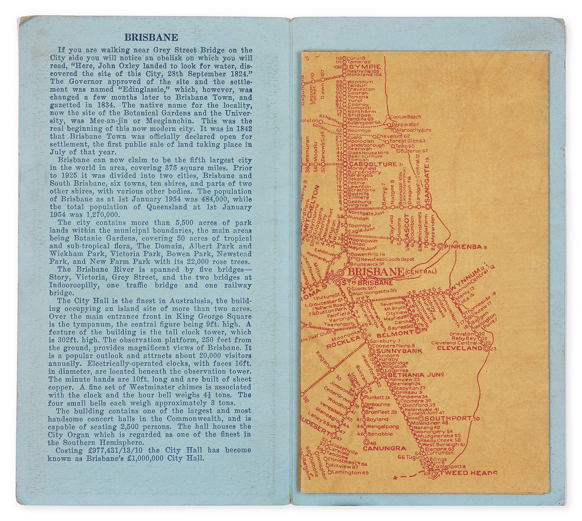 Scarce, folding c.20th colour printed map of Brisbane by Sydney G. Hughes, extending from Albion Park to the Brisbane Cricket Ground.