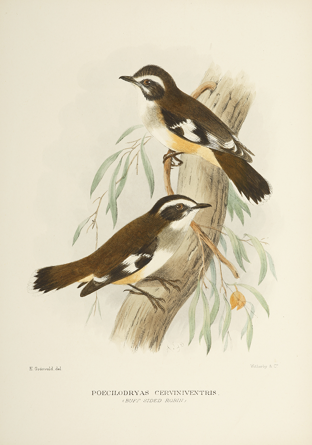 Gronvold was a Danish born artist who, after studying, entered the military as a draughtsman. On leaving Denmark he obtained work at the British History Museum in London. This image is from the last great bird series, The Birds of Australia by G. Matthews and is rarer than John Gould’s work on Australian birds, with only 225 sets done. It was the last series produced to use hand colouring rather than colour printed lithography for the illustrations.