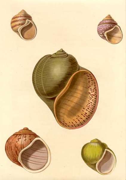 The early 19th century text describes the shell as orbicular, with a small spire of three folds.