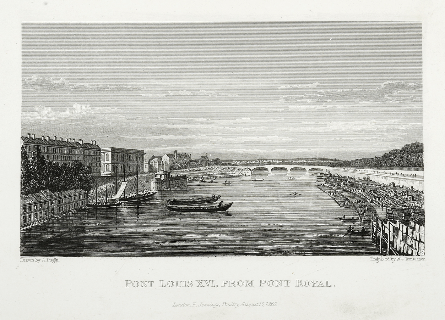 Nineteenth century engraving of the Pont Louis XVI, from Pont Royal.