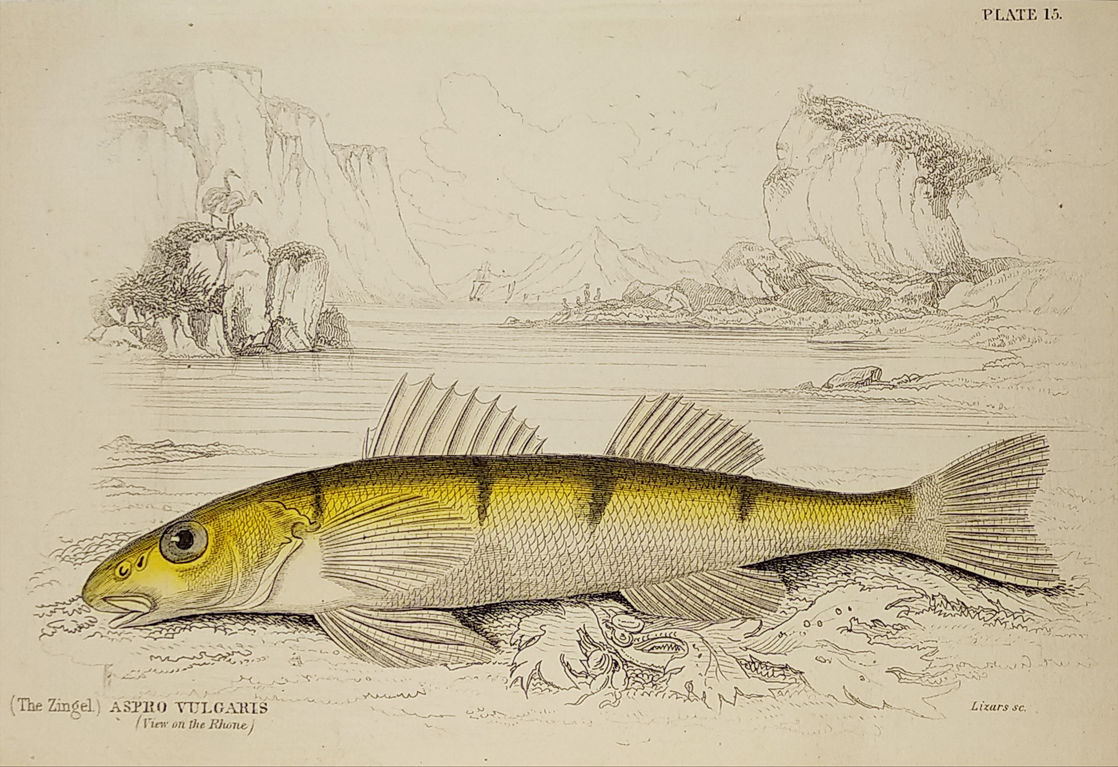 (The Zingel) Aspro vulguris (View on the Rhone) - Antique Print from 1843