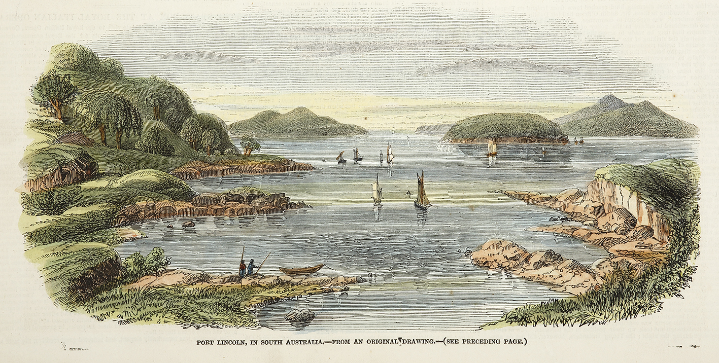 Scarce and early colonial engraving of Port Lincoln in 1848.