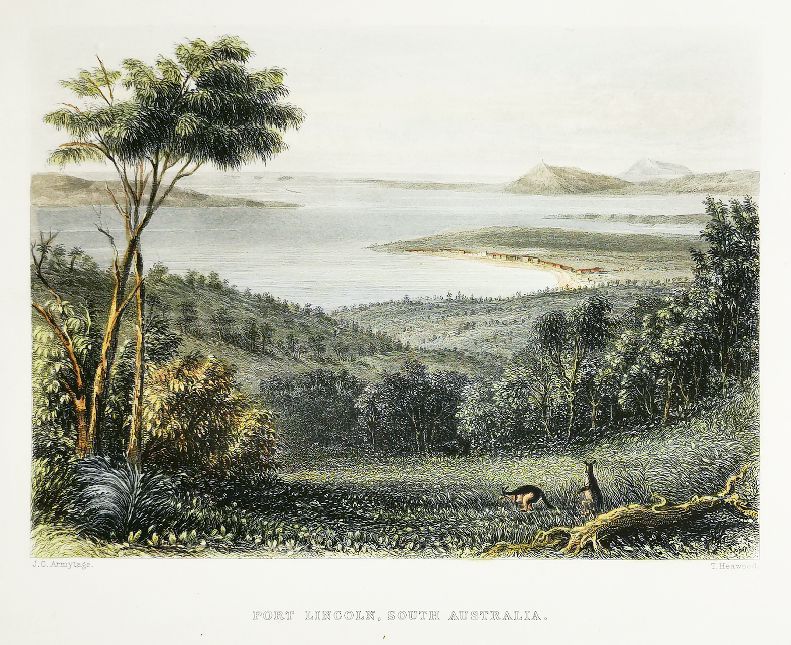 Scarce c.19th hand coloured engraving of Port Lincoln, overlooking Boston Bay in 1874. References: Ferguson, J. A. Bibliography of Australia Volumes 1-8, Canberra 1976 7280. Collections: National Library Australia: Bib ID 7337226 Library of Congress Washington D.C.: 43021238 State Library … Read Full Description