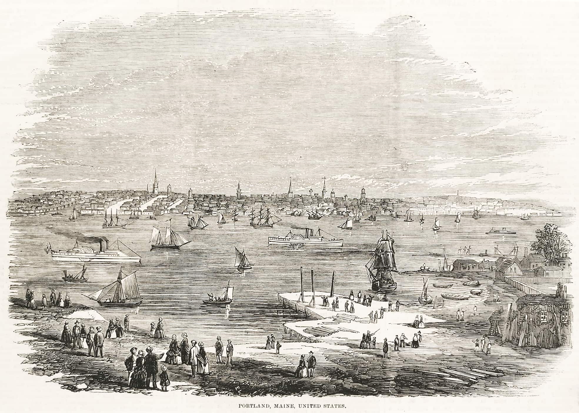 Engraving of Portland, Maine. From the original edition of The Illustrated London News.