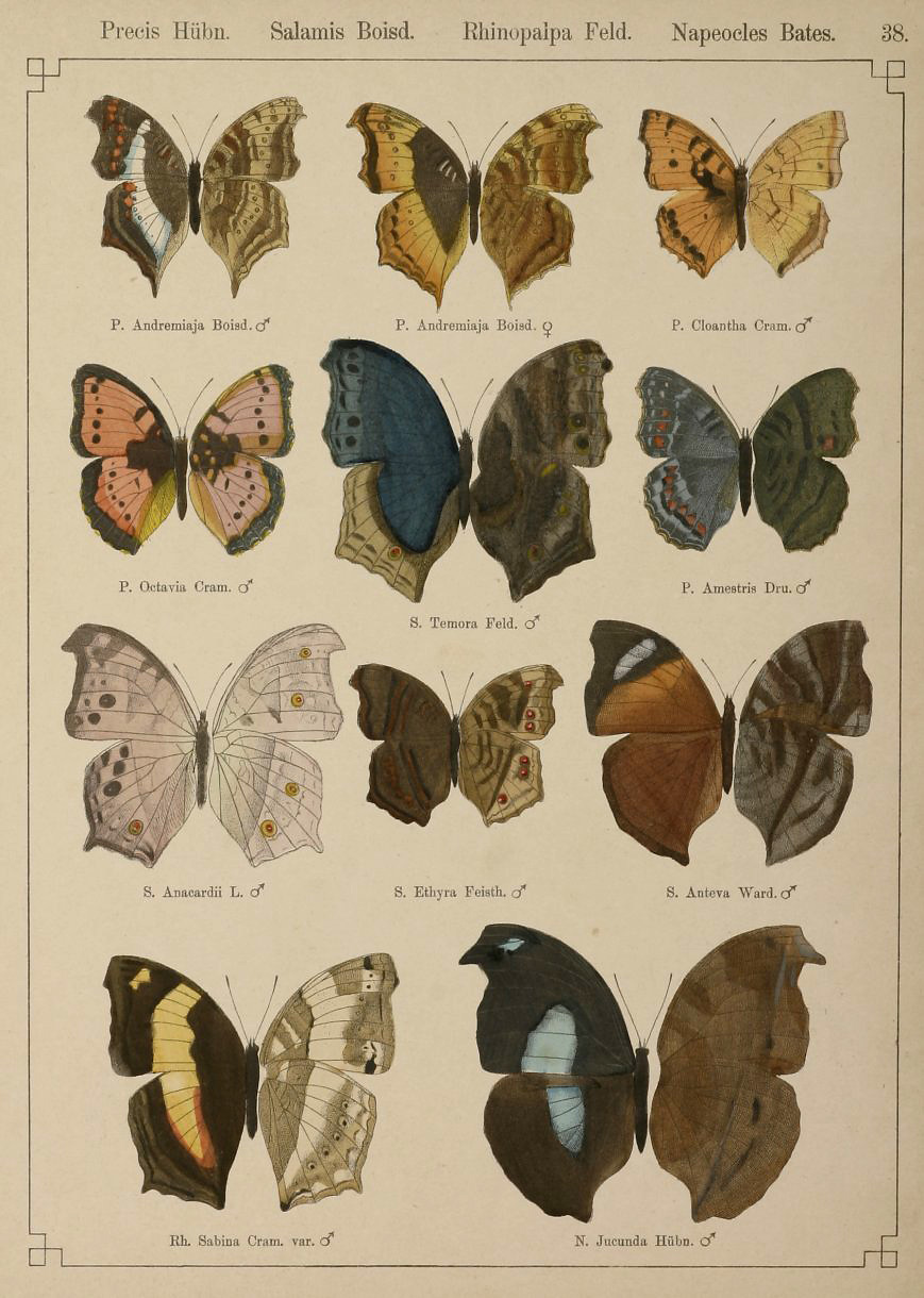 Lithograph from Otto Staudinger’s Exotische Schmetterlinge (“Exotic day butterflies”).