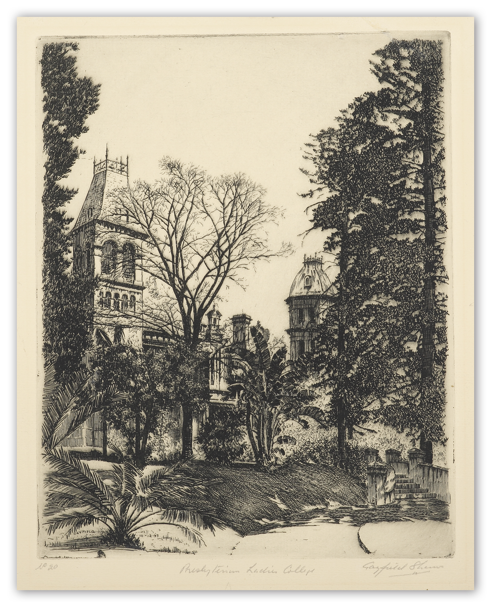 Fine etching of Presbyterian Ladies College by Gayfield Shaw. Collections: National Gallery Australia: Accession no NGA 2006.870