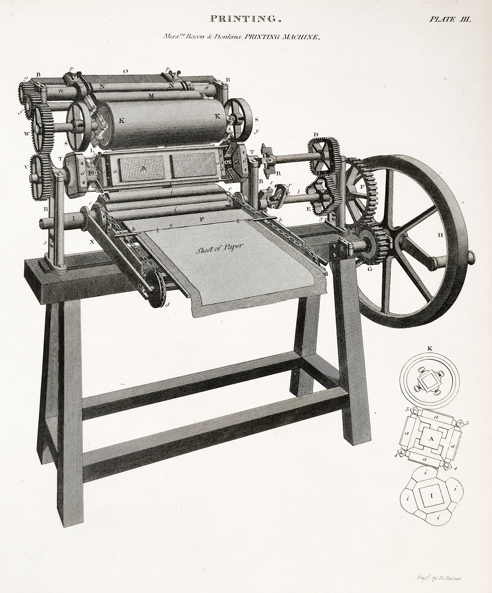 Printing. Mess.rs Bacon & Donkins, Printing Machine. - Antique Print from 1805