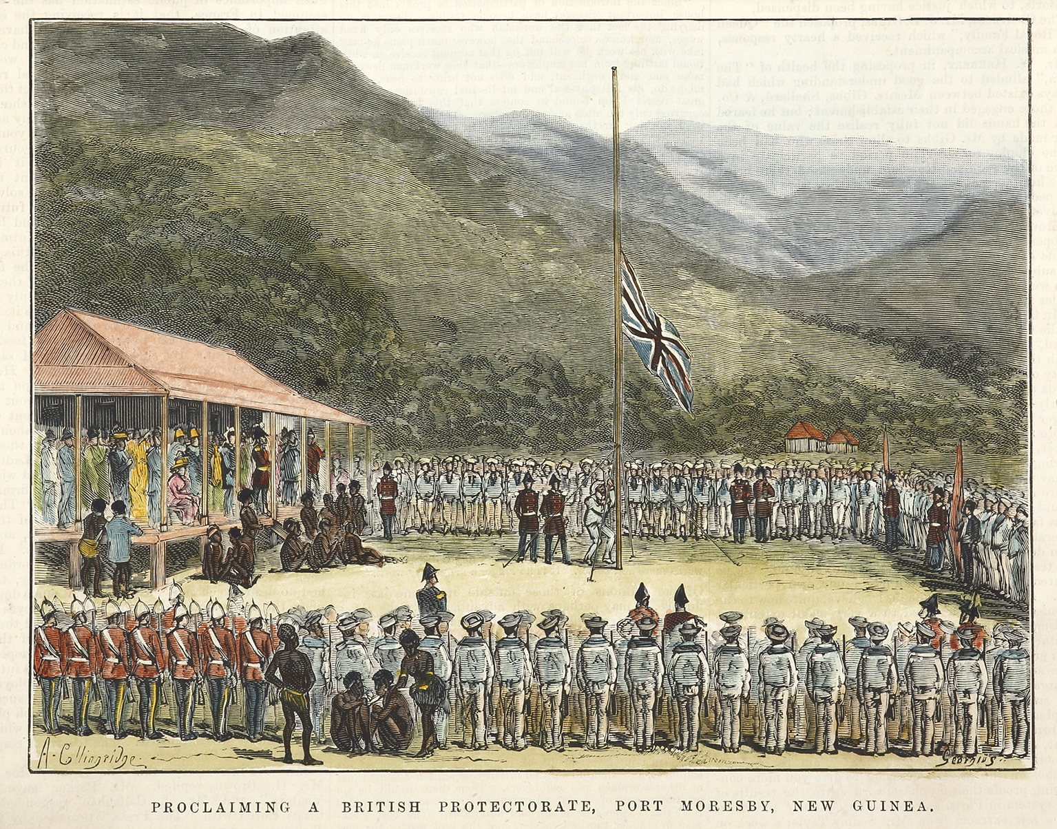 Proclaiming a British Protectorate, Port Moresby, New Guinea. - Antique View from 1884