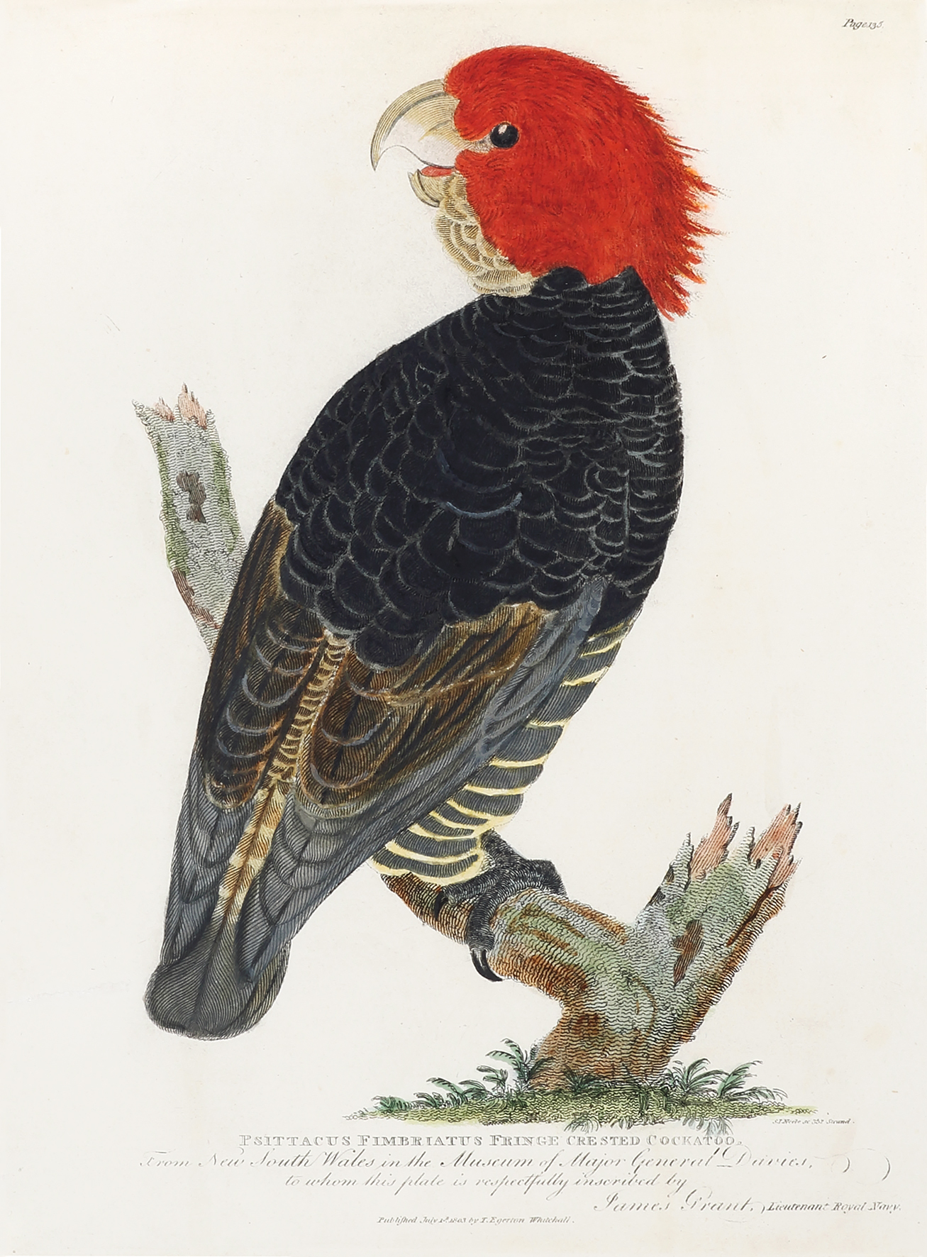 This is the first engraved illustration of the Gang-Gang from the account and specimen collected from Churchill Island in 1801 by James Grant (1772-1833) during his survey of Western Port, in the Lady Nelson.