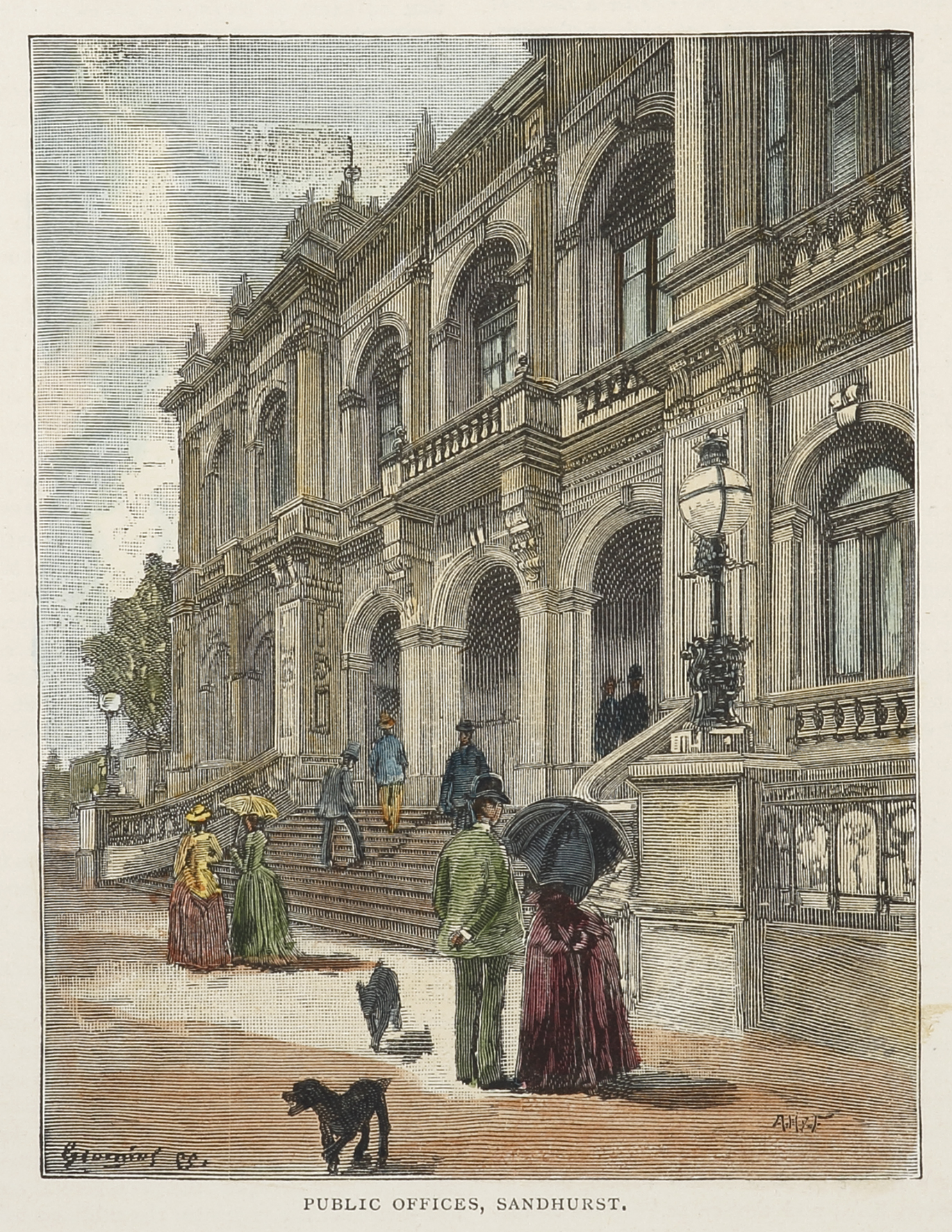 Colonial engraving of the public offices Bendigo.