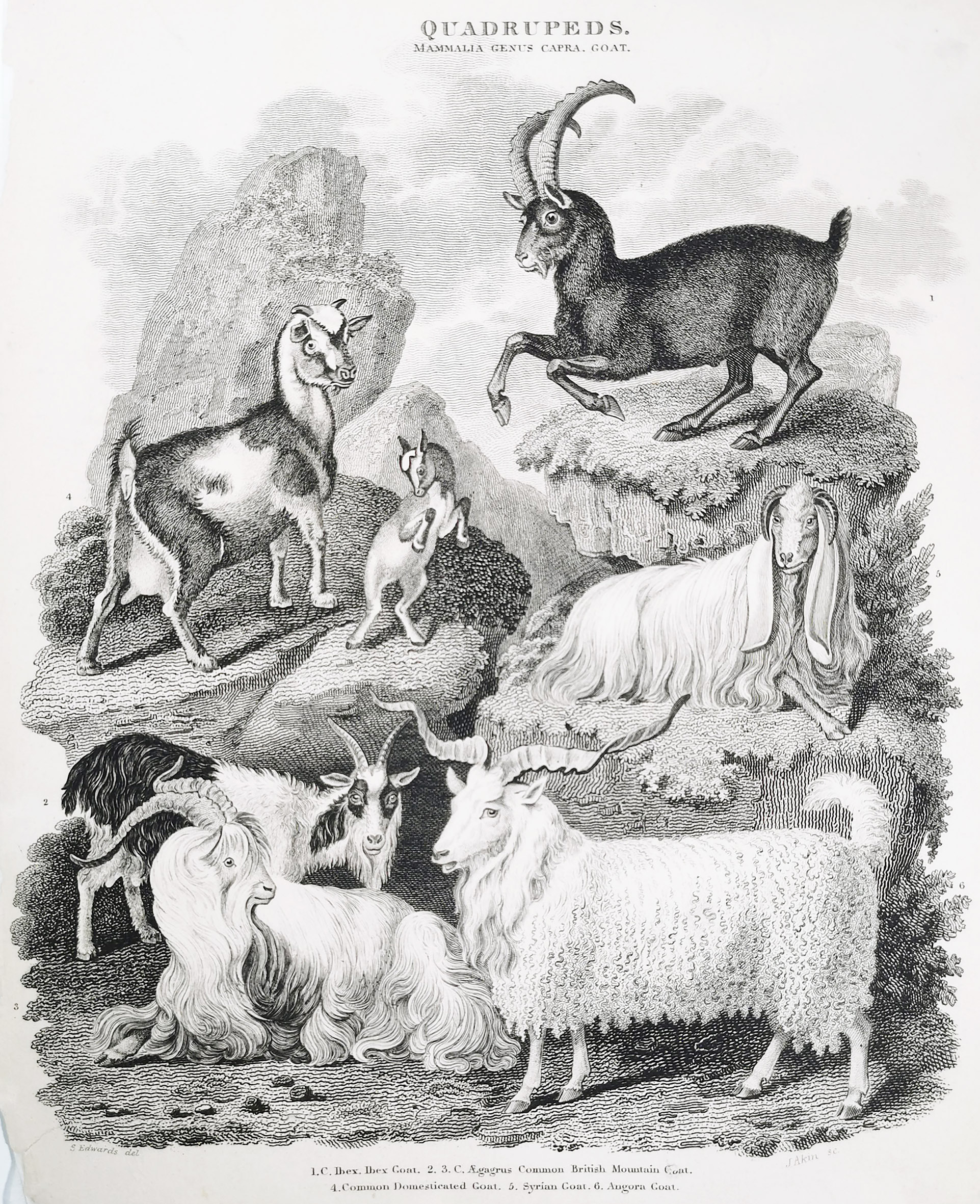 1. C. Ibex. Ibex Goat. 2. 3. C. Aegagrus Common British Mountain Goat. 4. Common Domesticated Goat. 5. Syrian Goat. 6. Angora Goat. From Cyclopaedia, or Universal Dictionary of Arts, Sciences, and Literature made by 100 contributors, most of whom … Read Full Description