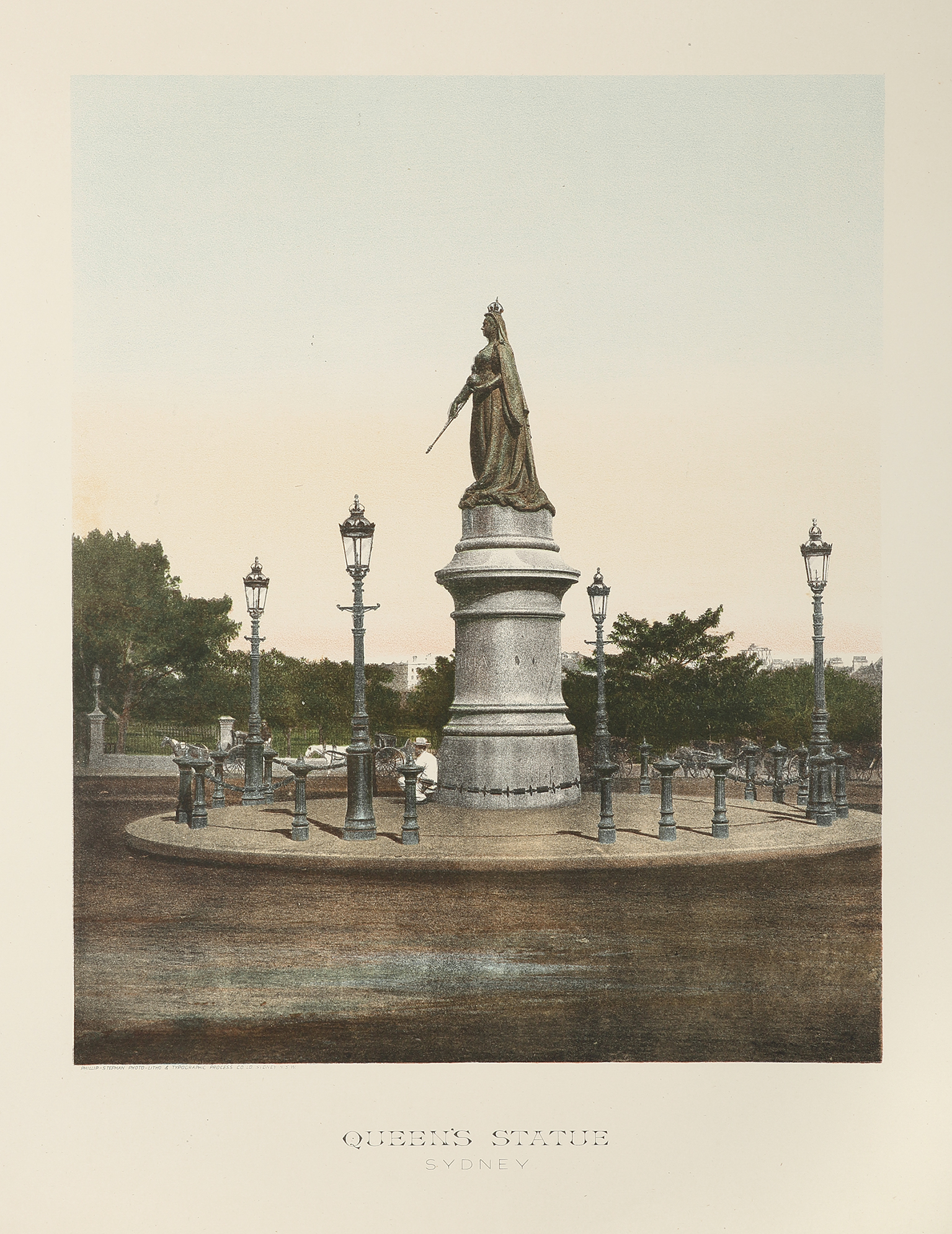 Superb large c.19th lithograph of the statue of Queen Victoria, Queens Square, Sydney.