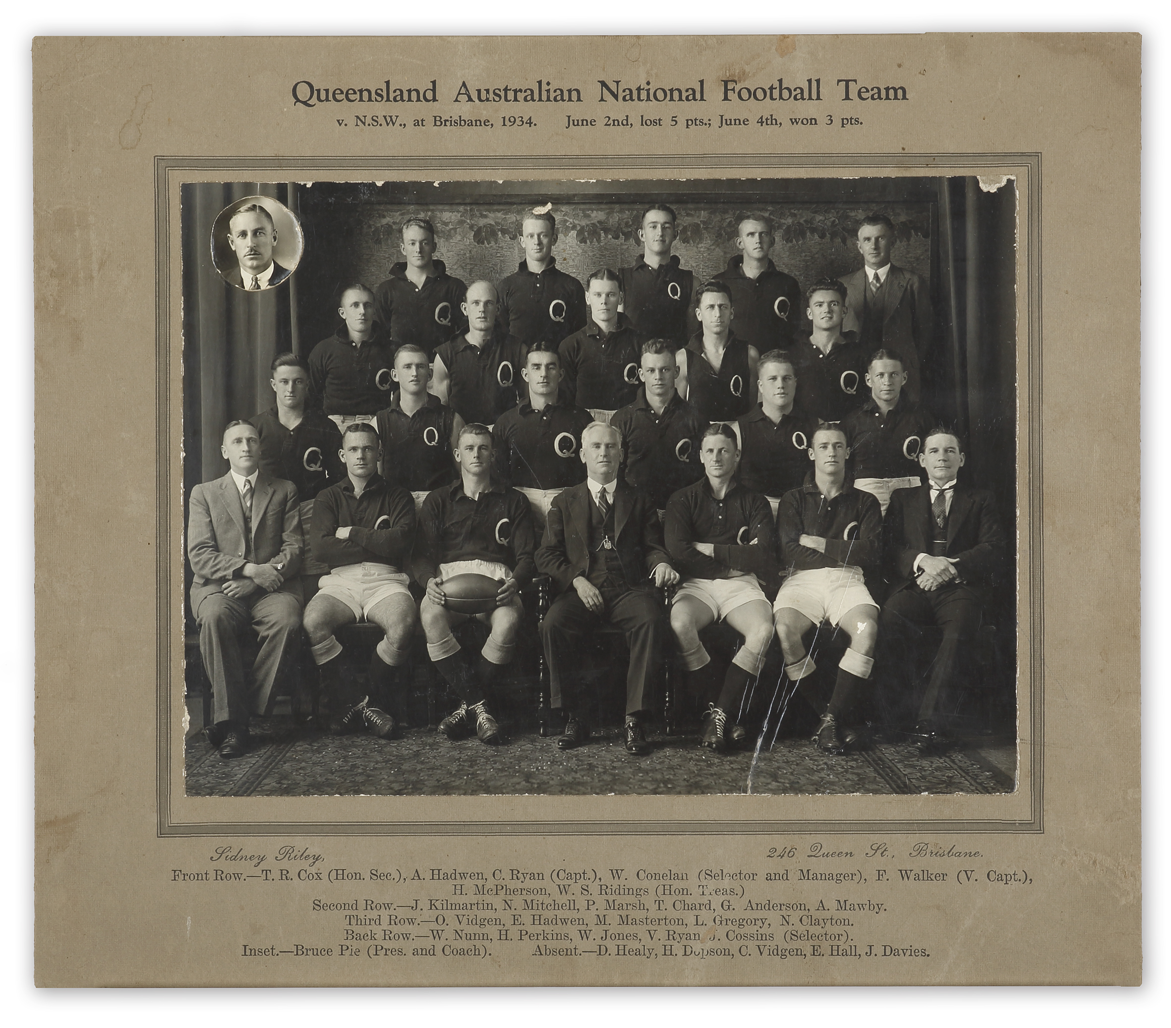 Rare original photograph of the Queensland Australian National Football Team which played against N.S.W in 1934 losing one the first game and winning the second.