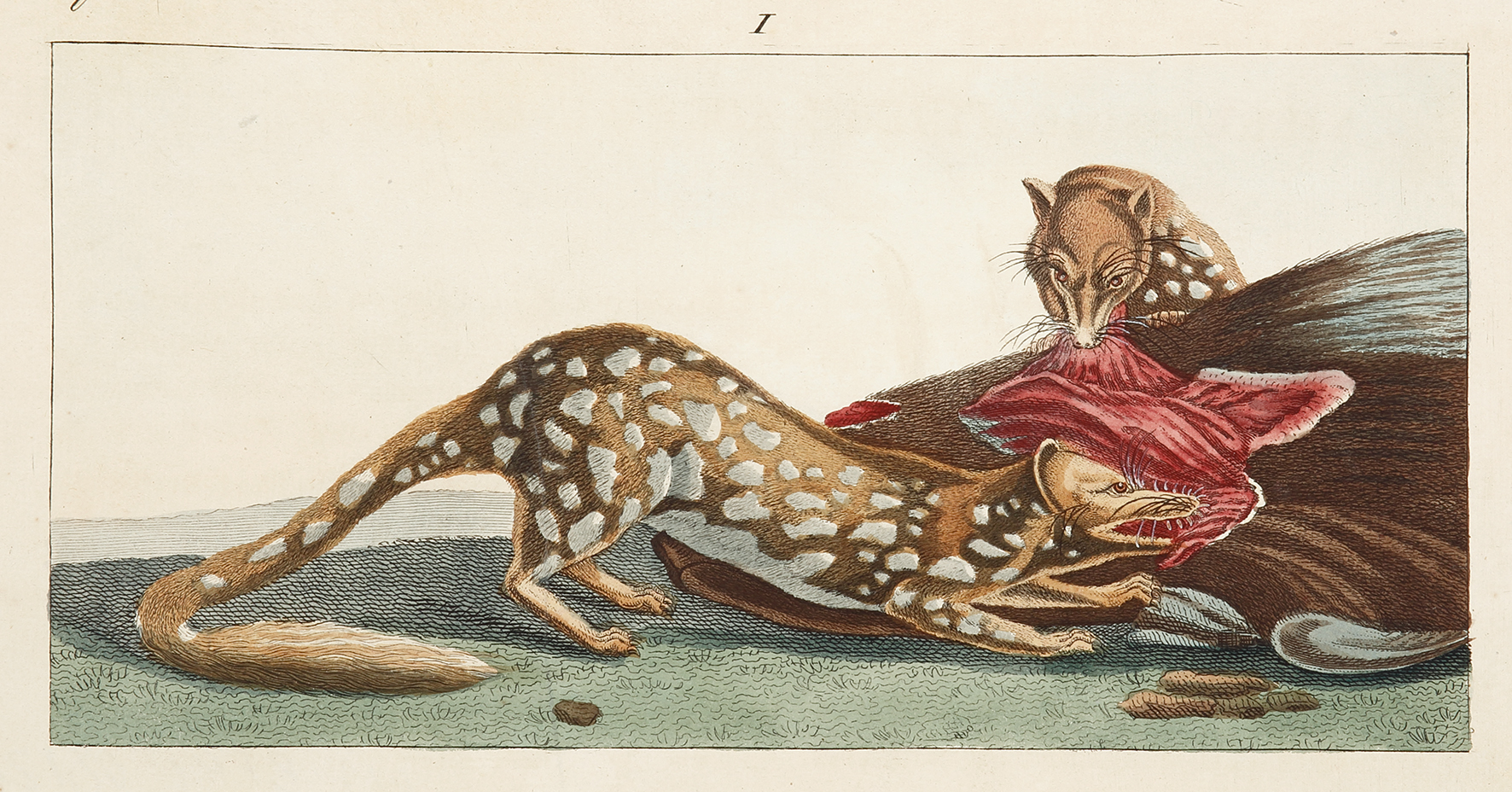 Early German engraving of the Spotted Quoll based on Charles Lessuer’s famous image made during the Nicholas Baudin voyage and issued in 1807..