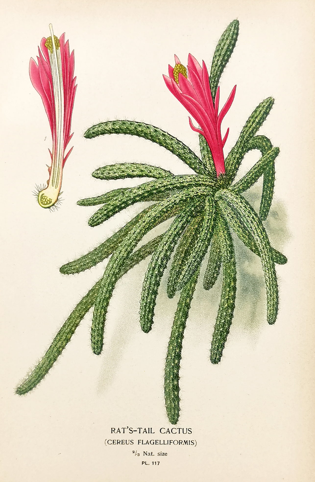 Engraving of the Rat’s-Tail Cactus. Fine botanical lithograph from Edward Step’s, Favourite Flowers of the Garden and Greenhouse.